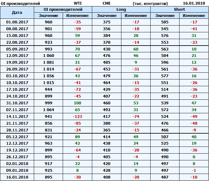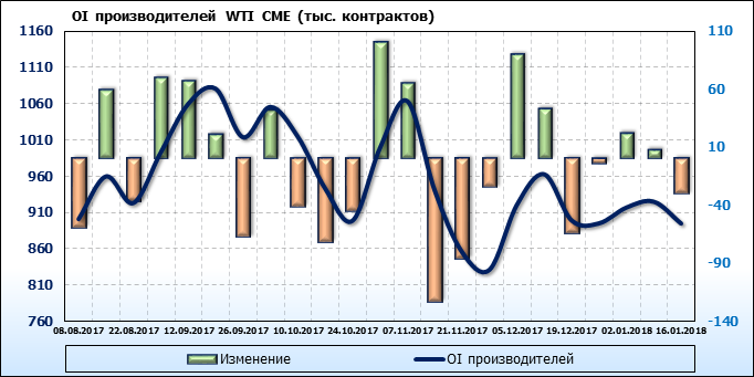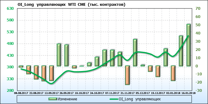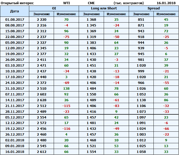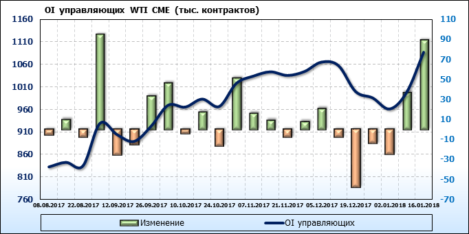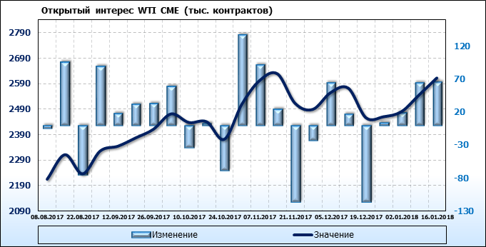Отчет по открытому интересу. WTI. Биржа CME Group на 20.01.2018.