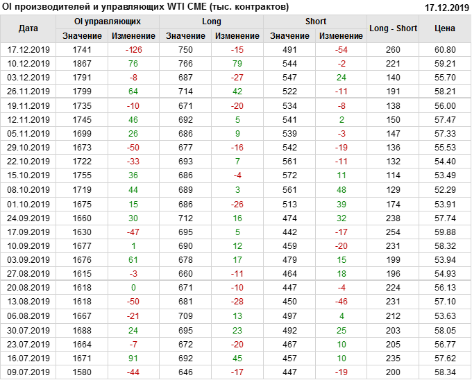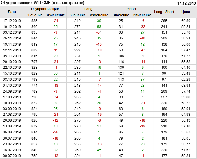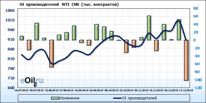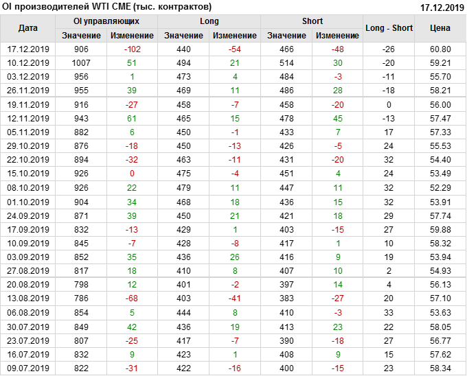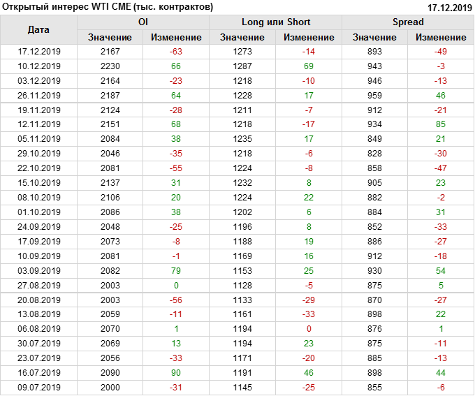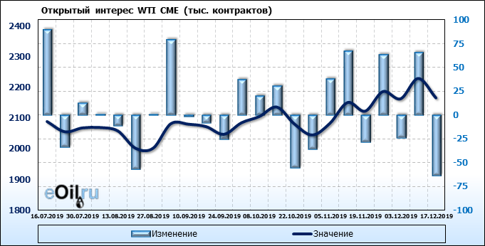 Отчет по открытому интересу. WTI. Биржа CME Group на 21.12.2019