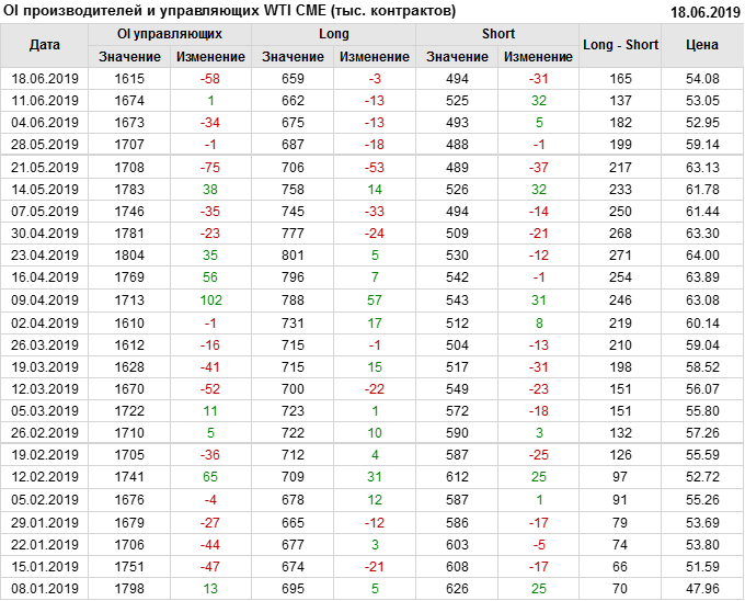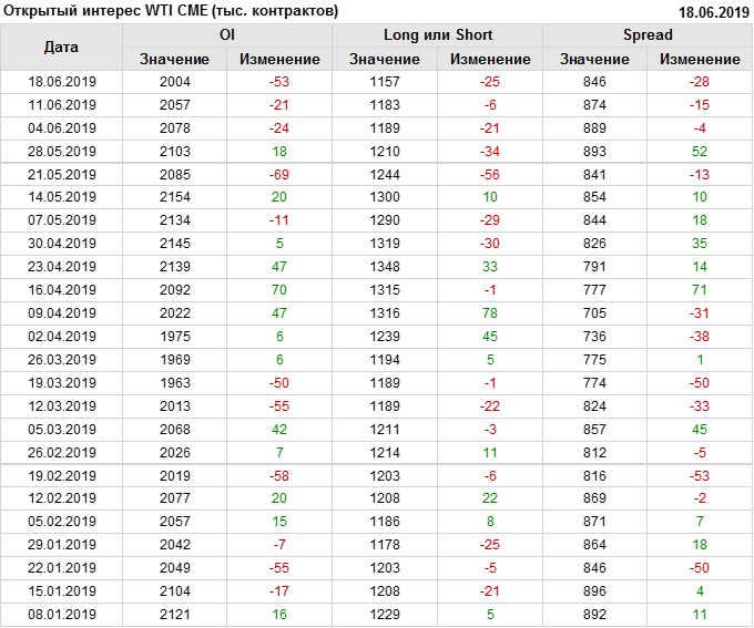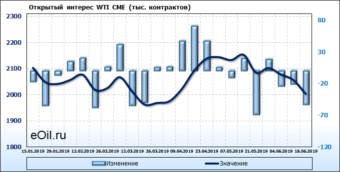 Отчет по открытому интересу. WTI. Биржа CME Group на 22.06.2019
