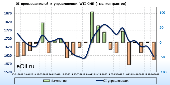 Отчет по открытому интересу. WTI. Биржа CME Group на 22.06.2019