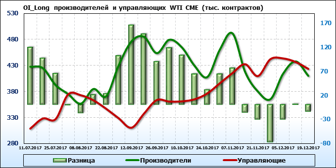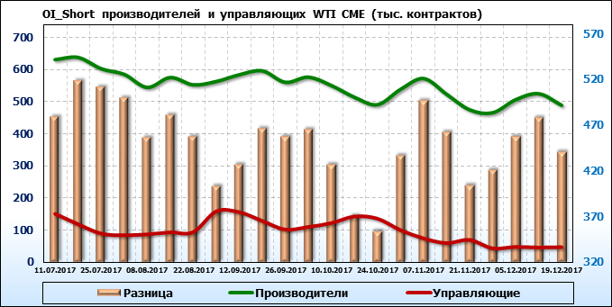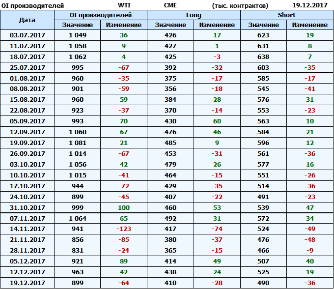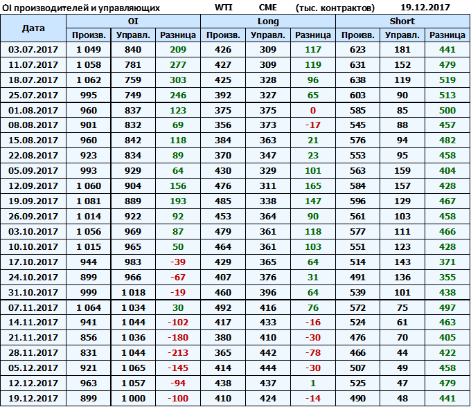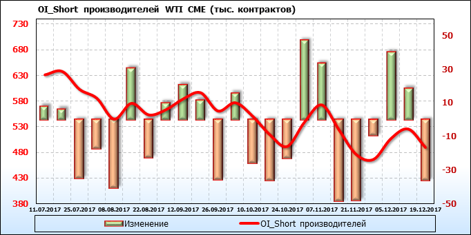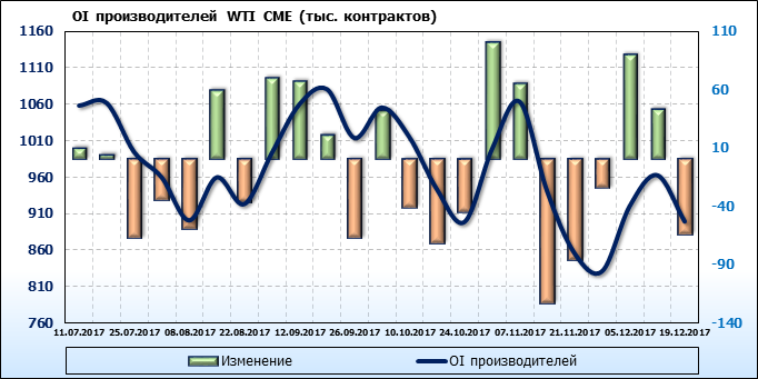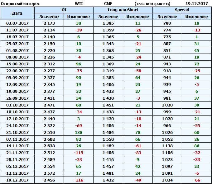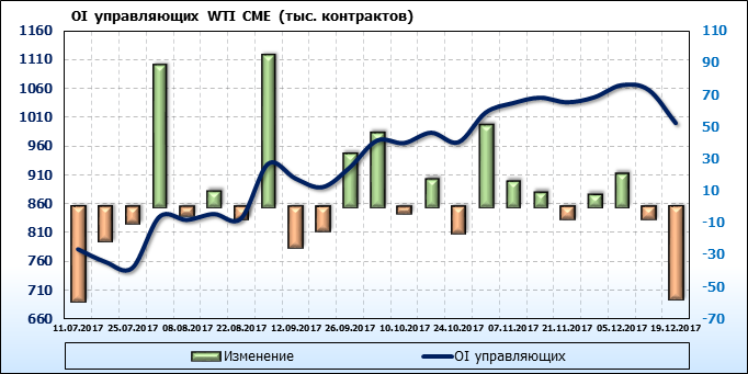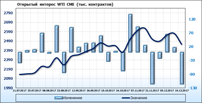 Отчет по открытому интересу. WTI. Биржа CME Group на 23.12.2017.