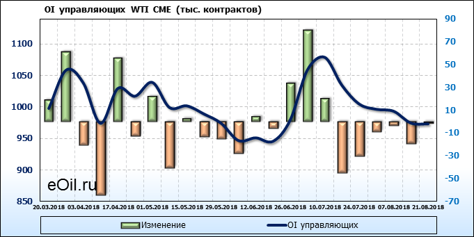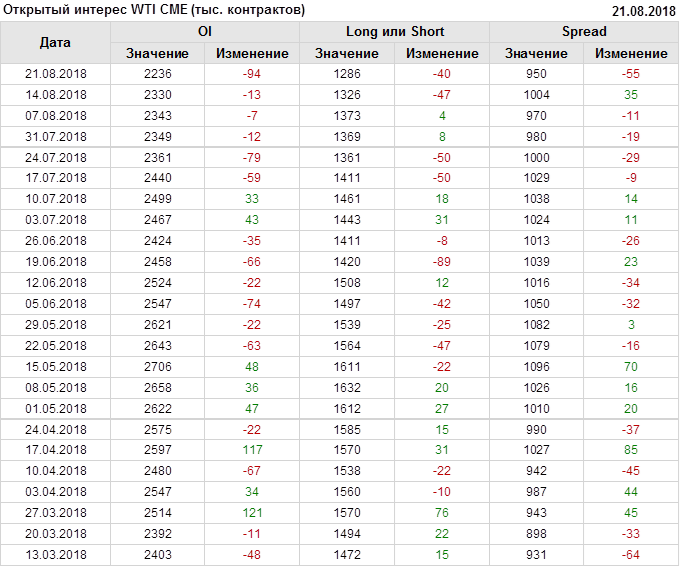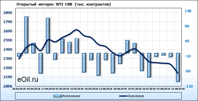 Отчет по открытому интересу. WTI. Биржа CME Group на 25.08.2018