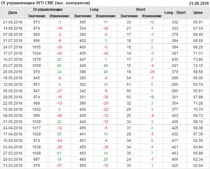 Отчет по открытому интересу. WTI+Brent. CME Group и ICE на 25.08.2018