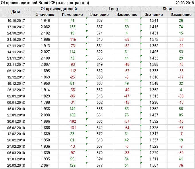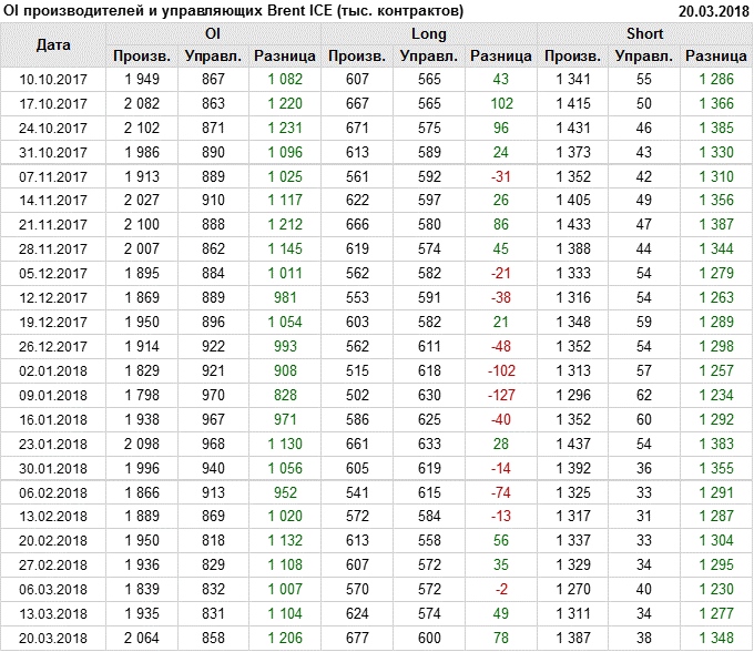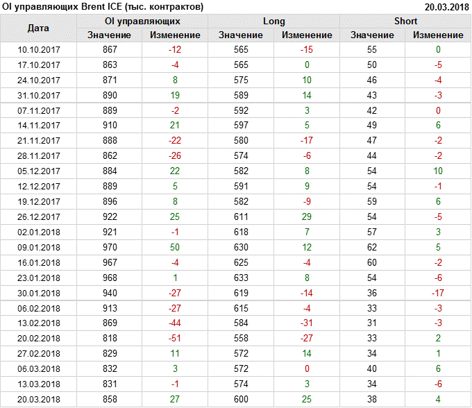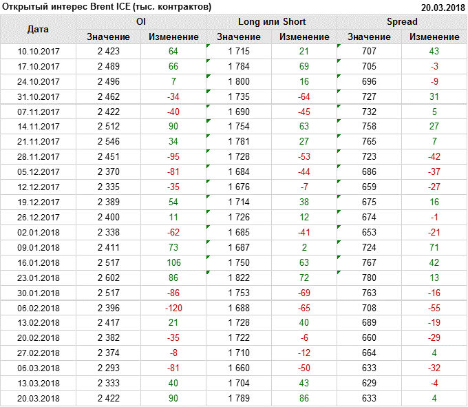 Отчет по открытому интересу. Brent. Биржа ICE на 26.03.2018.
