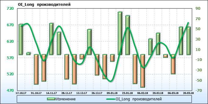 За прошлую неделю, 12.03.18 — 16.03.18, открытый интерес вырос на Объем вовлеченных в торговлю контрактов составляет 2422164 штук. Текущее положение дел на рынке таково, что деньги в течение прошлой недели приходили на рынок поддерживая тенденцию.