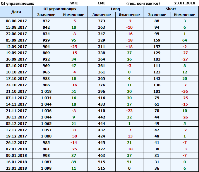 Отчет по открытому интересу. WTI. Биржа CME Group на 27.01.2018.