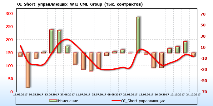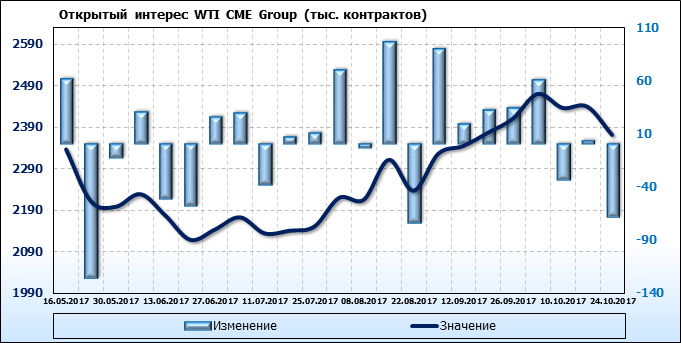 Отчет по открытому интересу. WTI. Биржа CME Group на 27.10.2017.