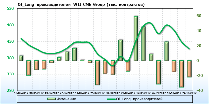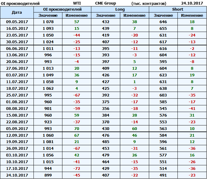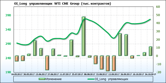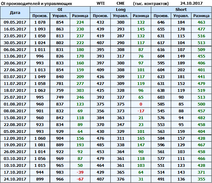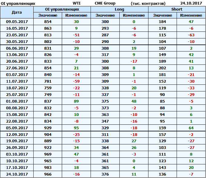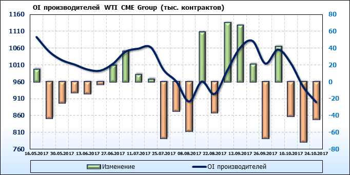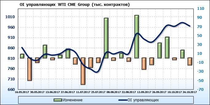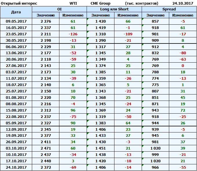 Отчет по открытому интересу. WTI. Биржа CME Group на 27.10.2017.