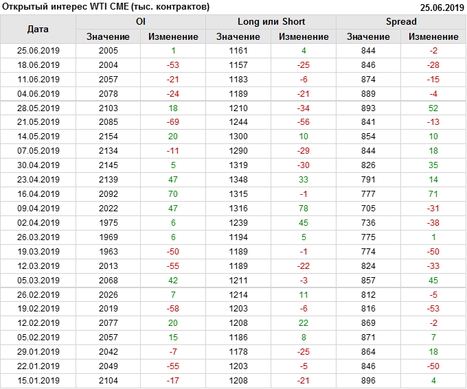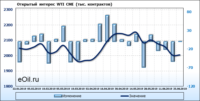 Отчет по открытому интересу. WTI. Биржа CME Group на 29.06.2019