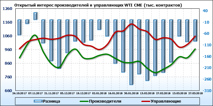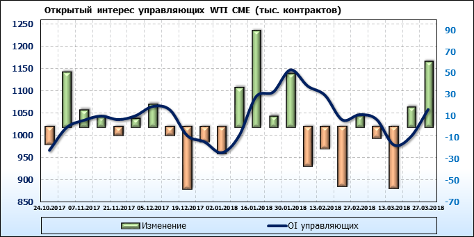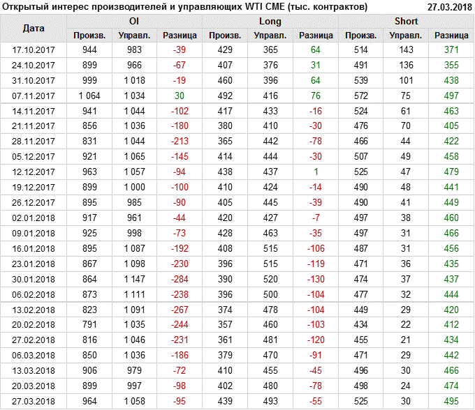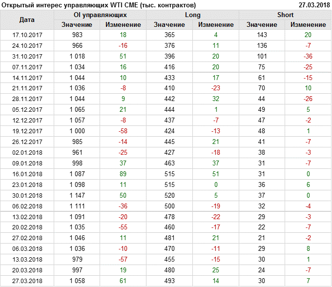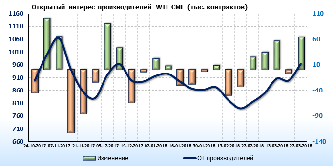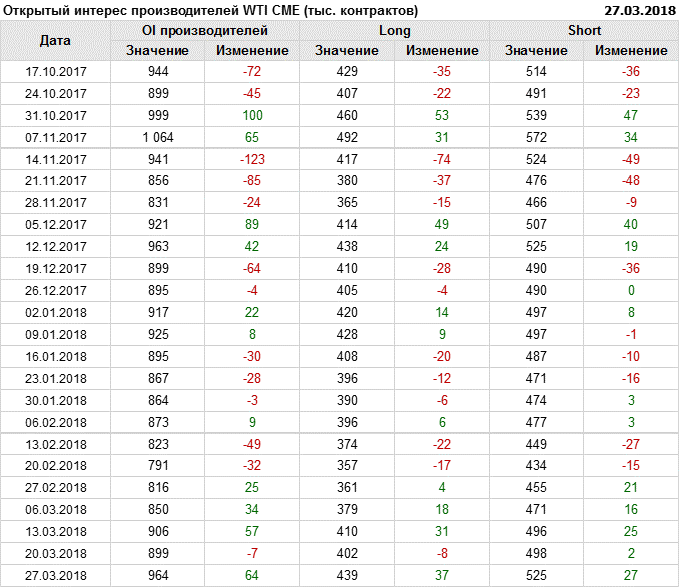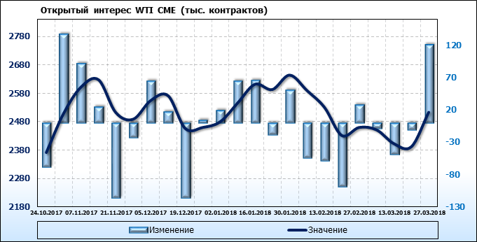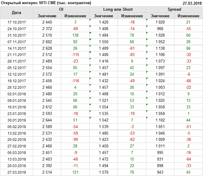 Отчет по открытому интересу. WTI. Биржа CME Group на 30.03.2018.