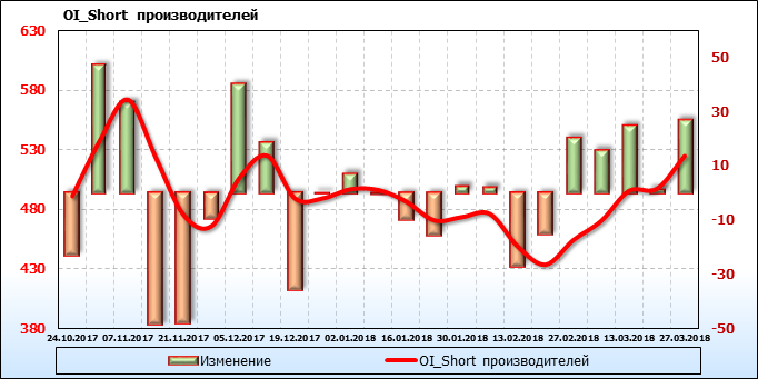 Открытый интерес производителей вырос на 64 тысяч контрактов. Объем контрактов, направленных как правило на хеджирование, составляет 963777 штук. Деньги производителей в течение прошлой недели приходили на рынок поддерживая тенденцию.