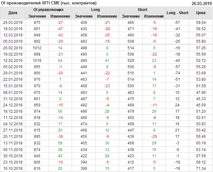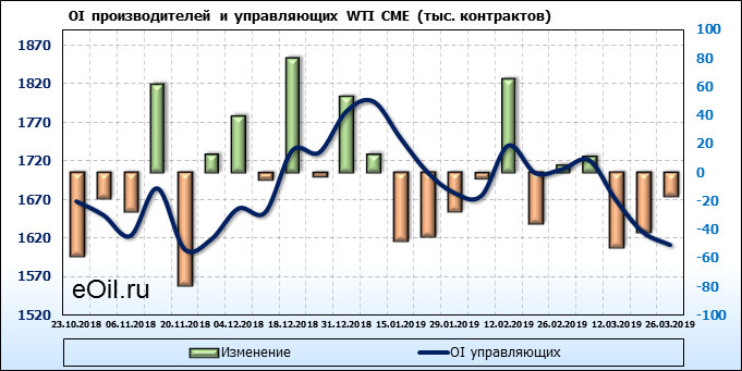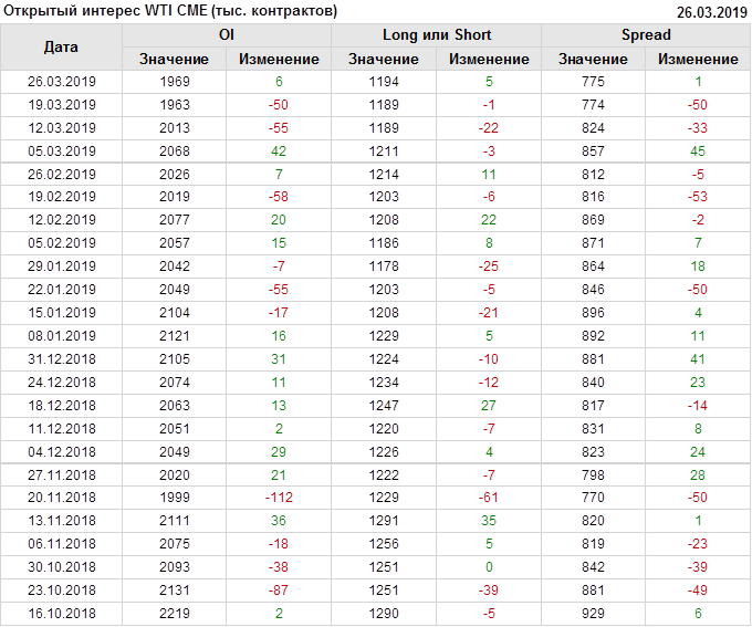 Отчет по открытому интересу. WTI. Биржа CME Group на 30.03.2019
