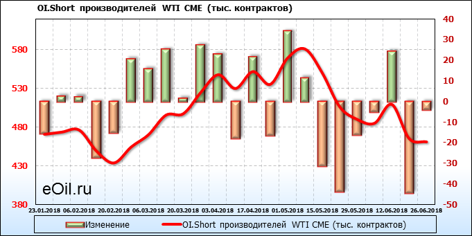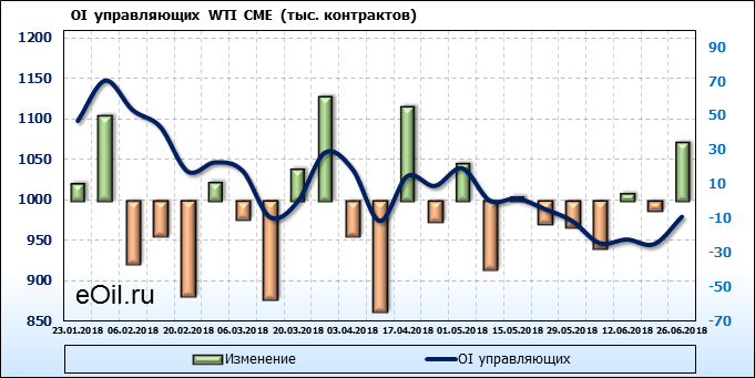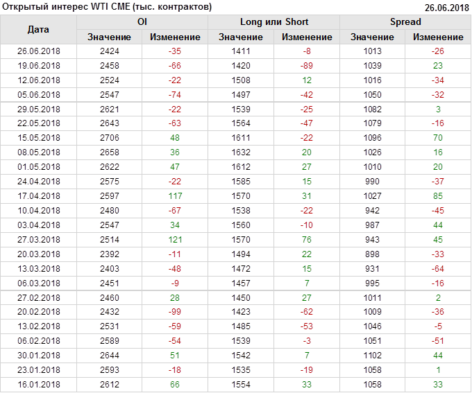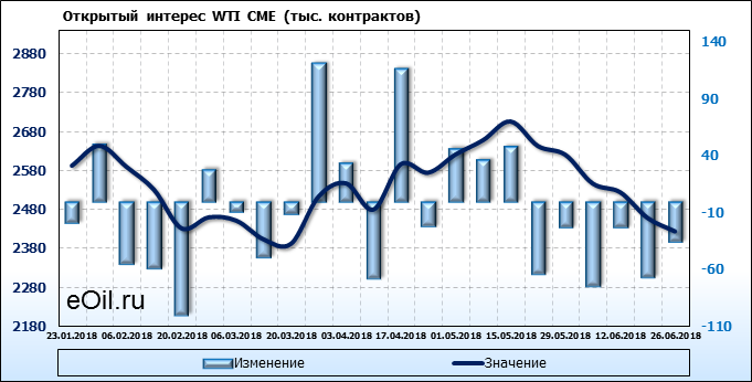 Отчет по открытому интересу. WTI. Биржа CME Group на 30.06.2018