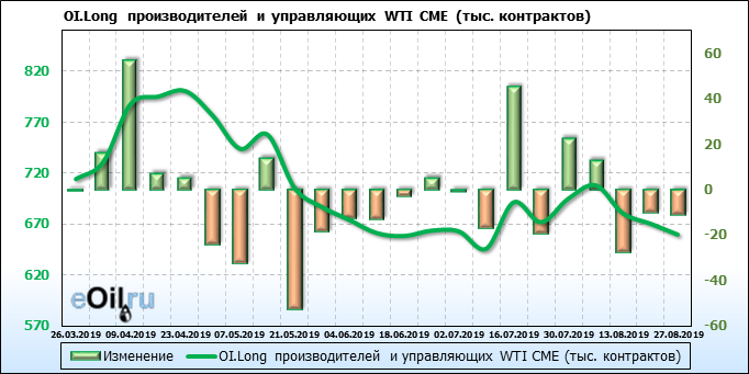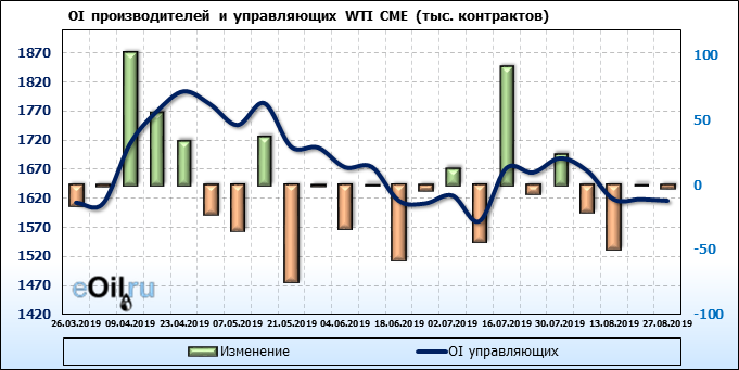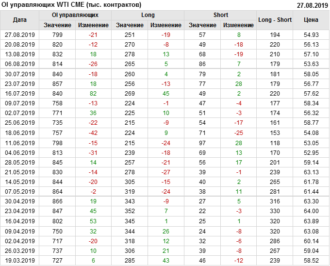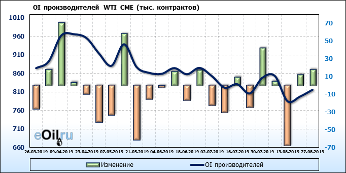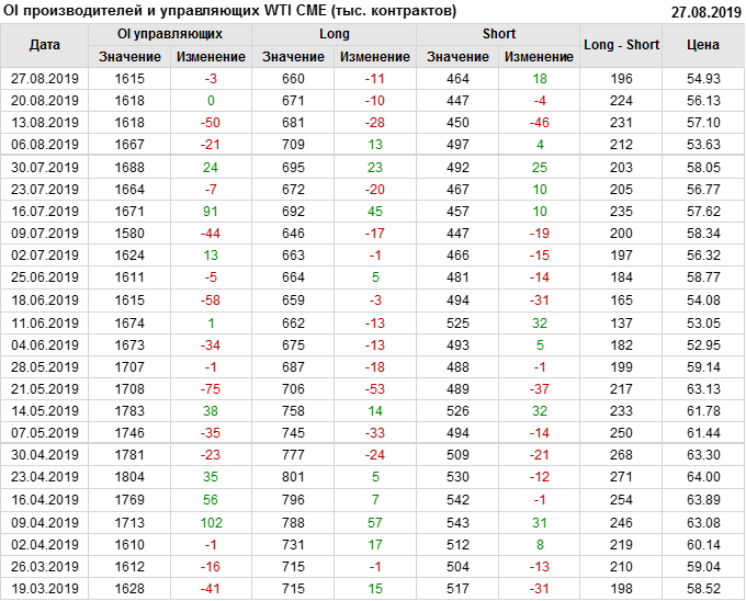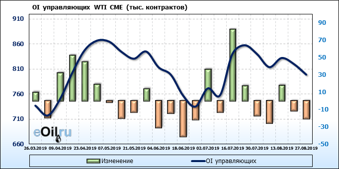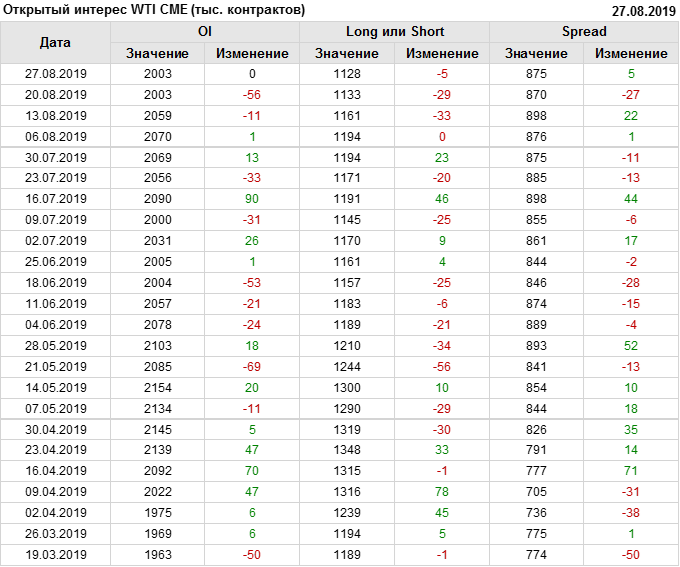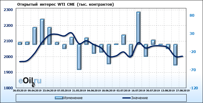 Отчет по открытому интересу. WTI. Биржа CME Group на 31.08.2019