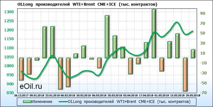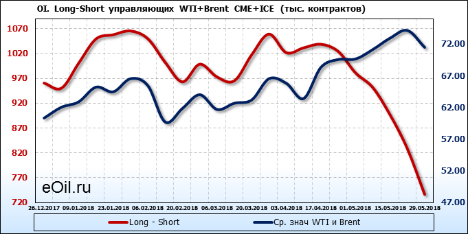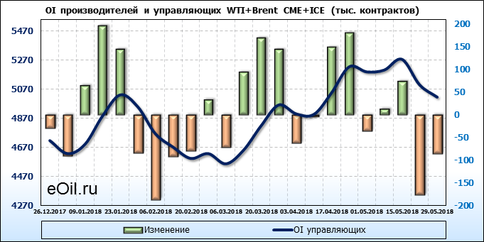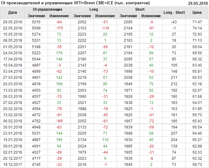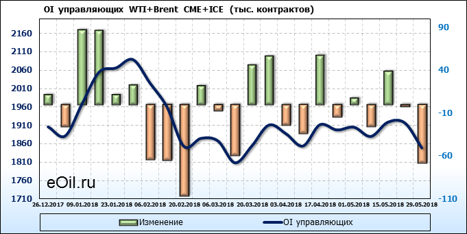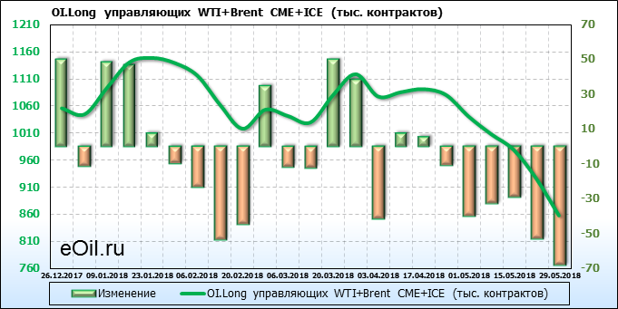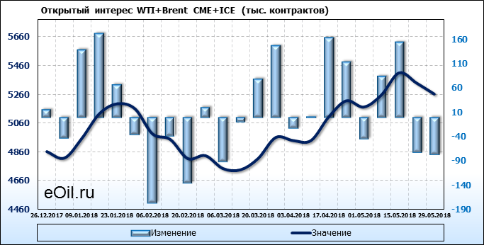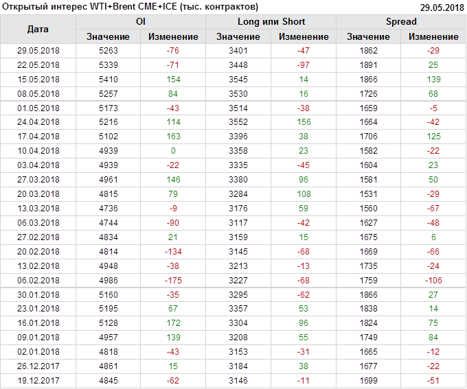 Отчет по открытому интересу. WTI+Brent. CME Group и ICE на 02.06.2018
