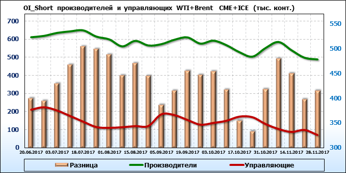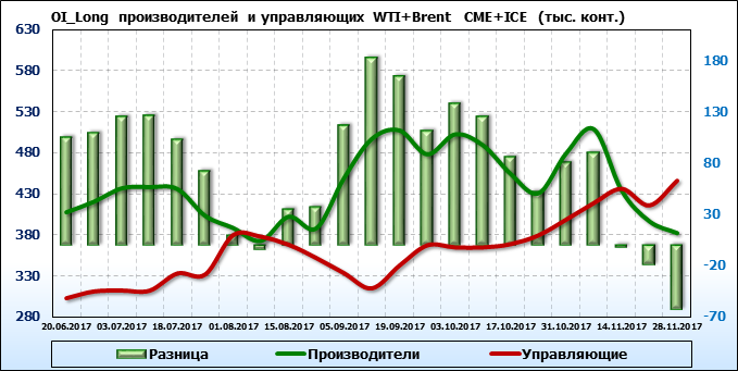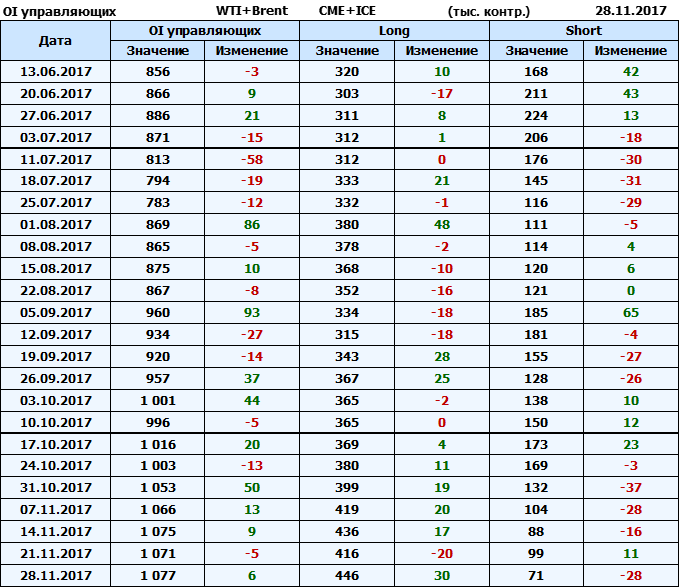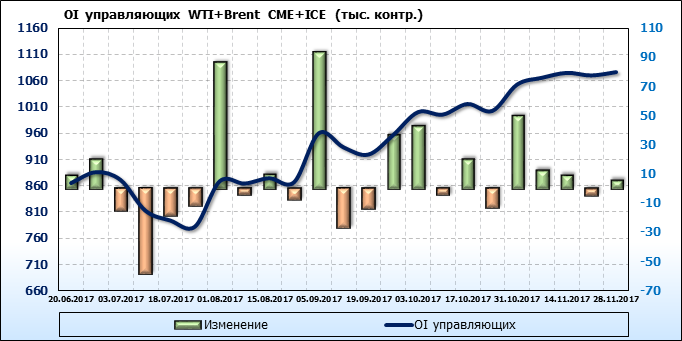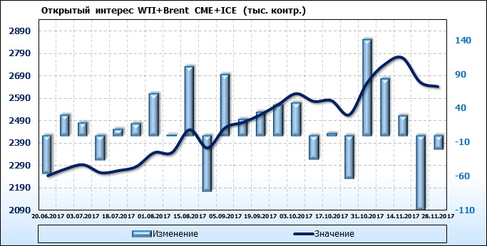 Отчет по открытому интересу. WTI+Brent. CME Group и ICE на 02.12.2017.