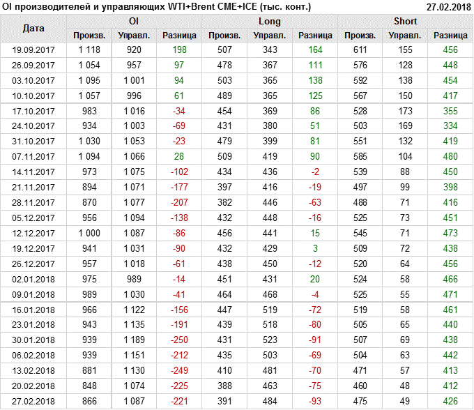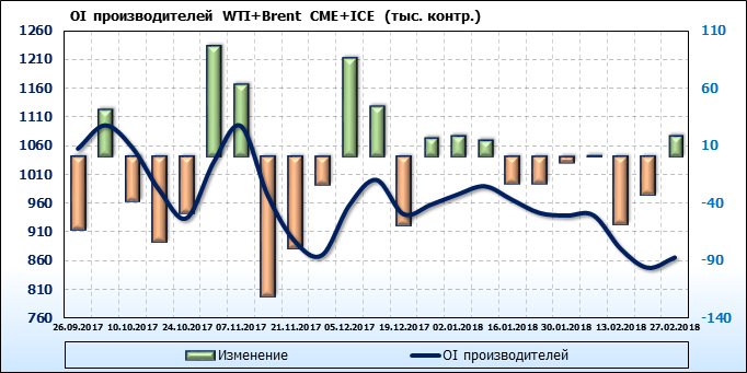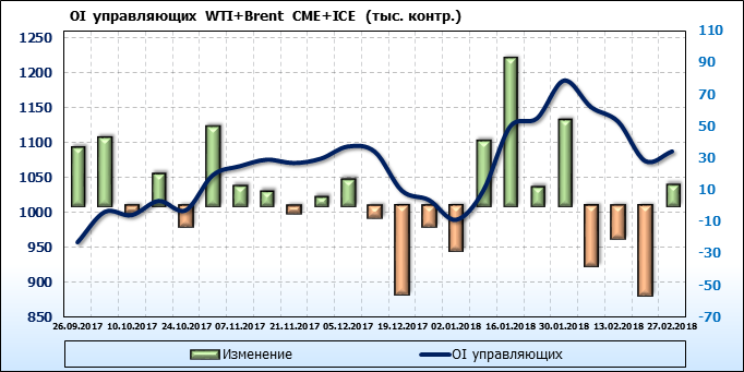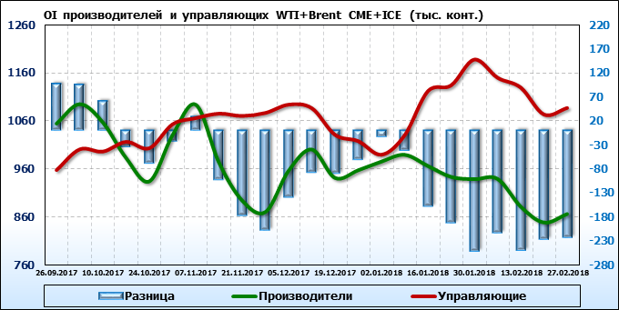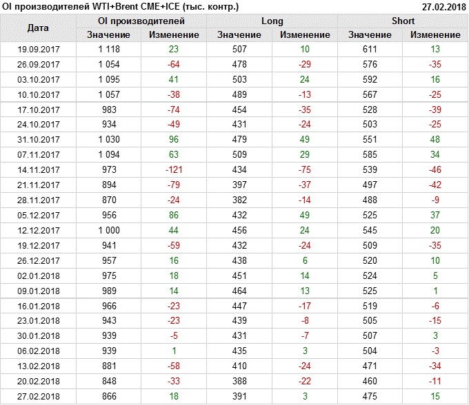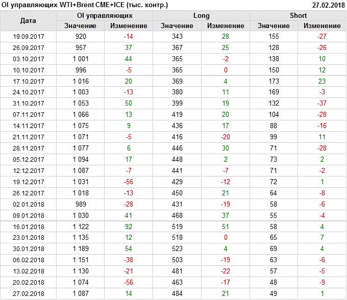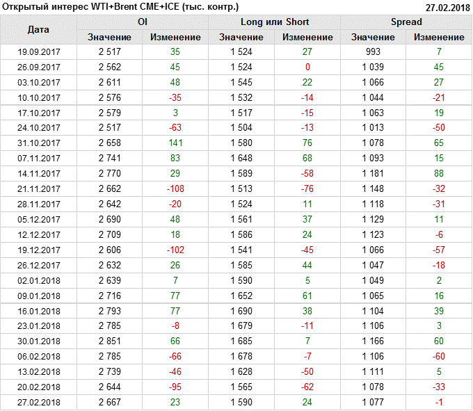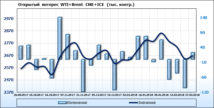 Отчет по открытому интересу. WTI+Brent. CME Group и ICE на 03.03.2018.