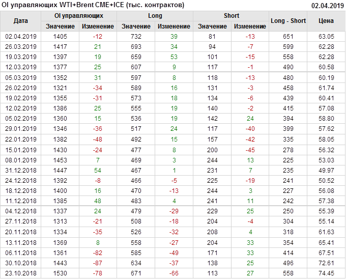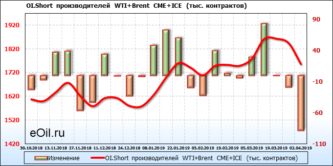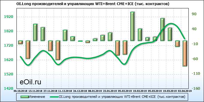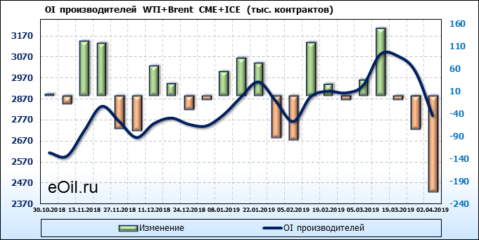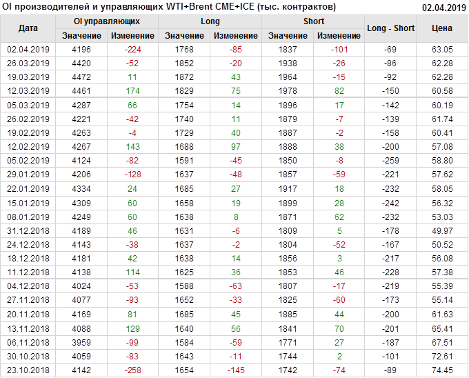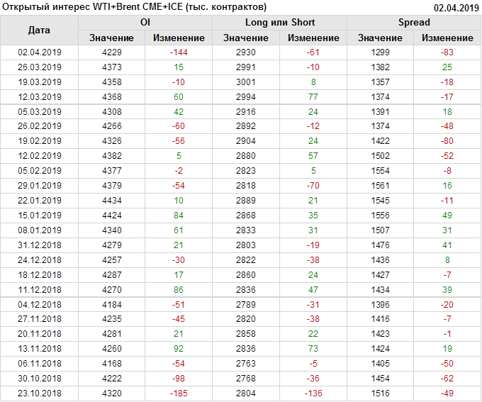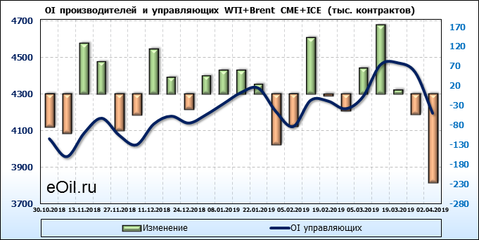Отчет по открытому интересу. WTI+Brent. CME Group и ICE на 06.04.2019