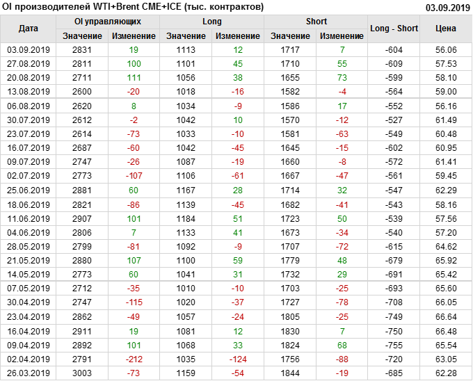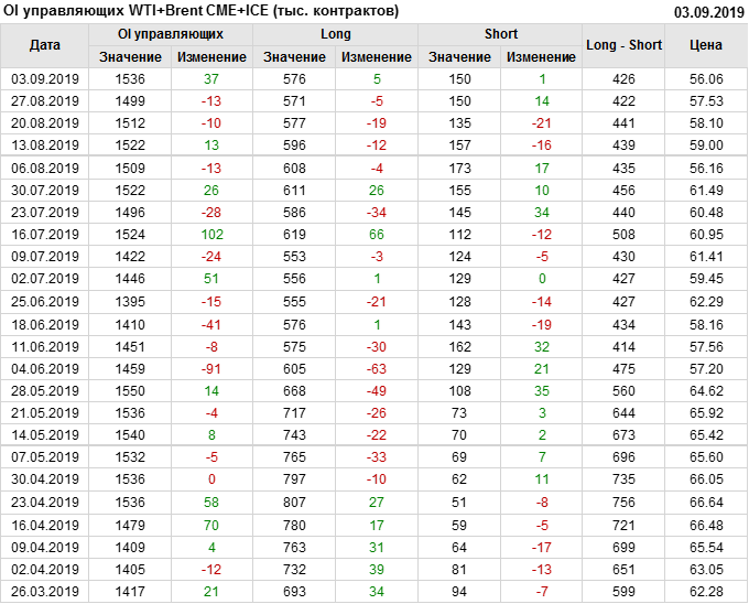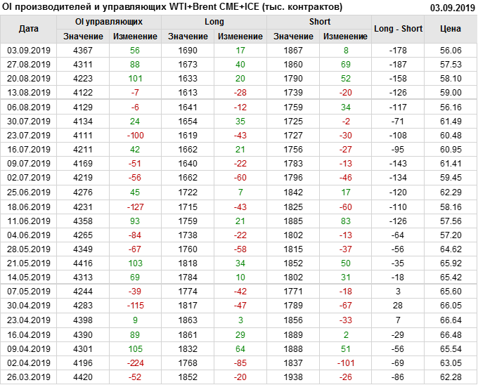 Отчет по открытому интересу. WTI+Brent. CME Group и ICE на 07.09.2019