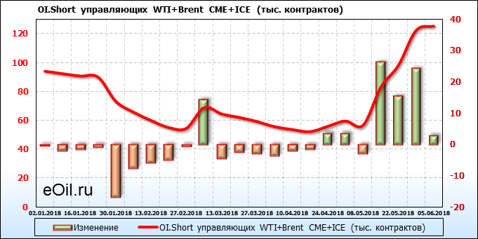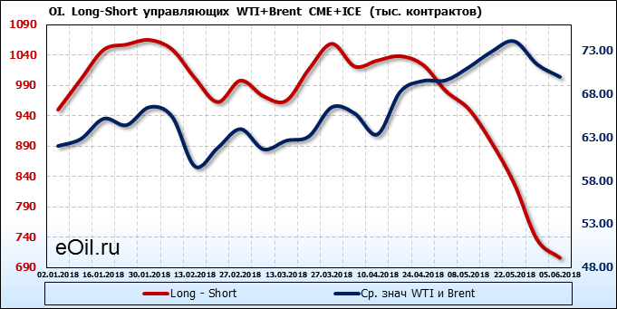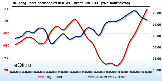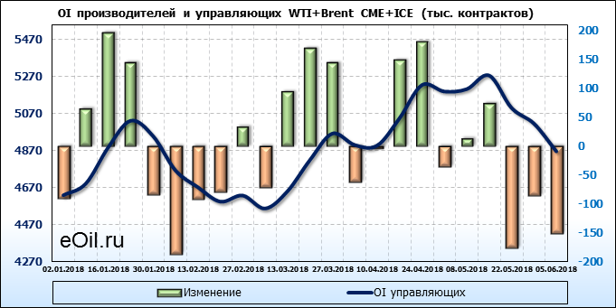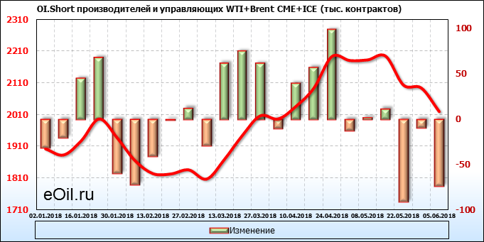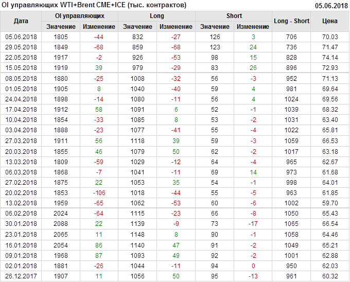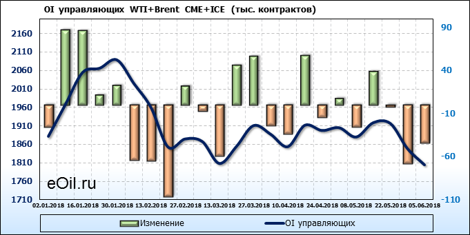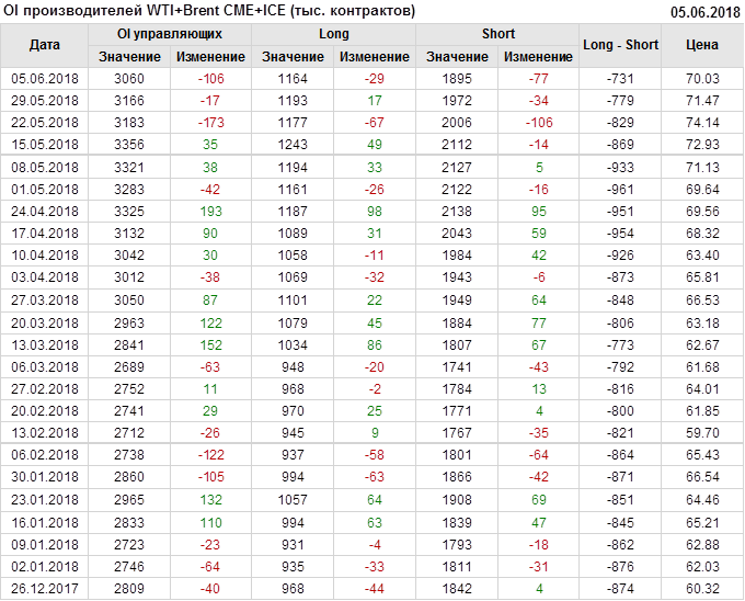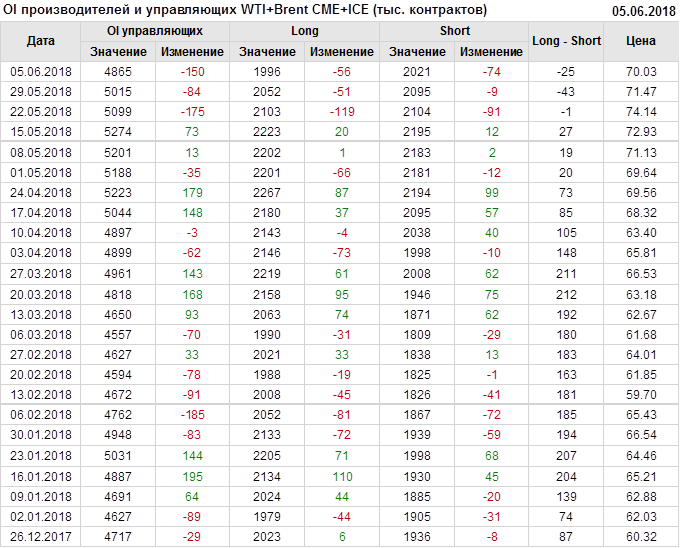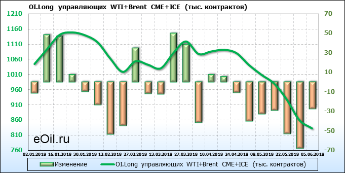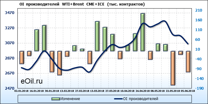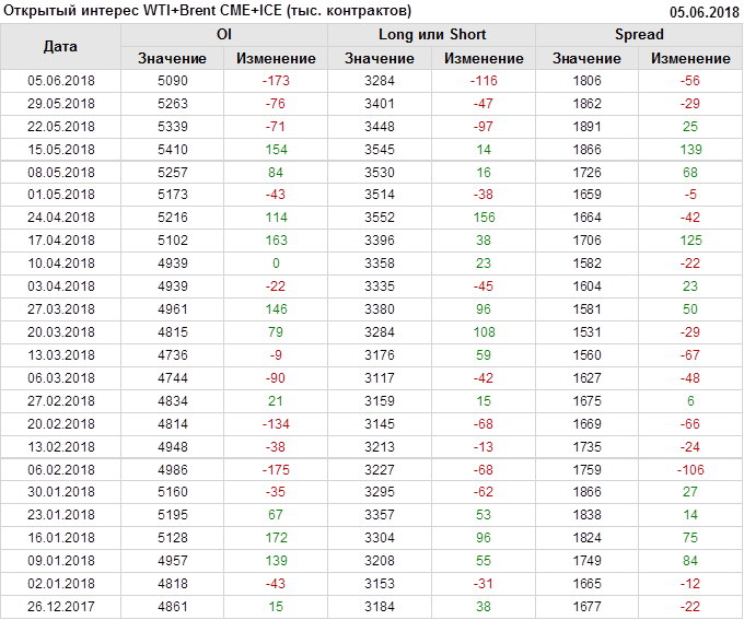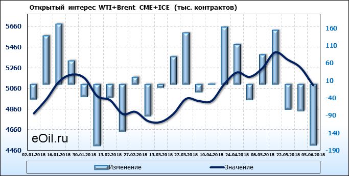 Отчет по открытому интересу. WTI+Brent. CME Group и ICE на 09.06.2018