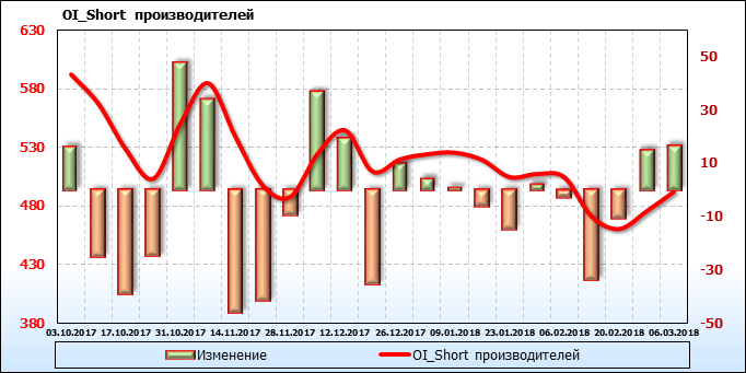 Открытый интерес производителей вырос на 33 тысячи контрактов. Объем контрактов, направленных как правило на хеджирование, составляет 899 384 штуки. Деньги производителей в течение прошлой недели приходили на рынок поддерживая тенденцию.