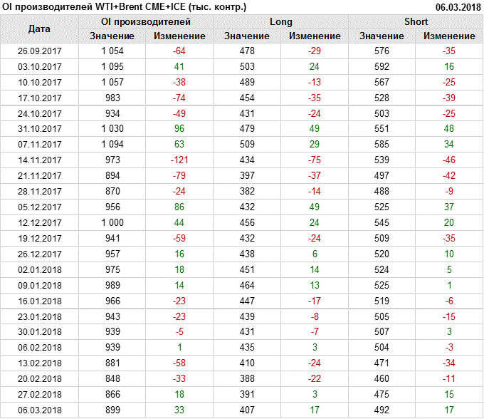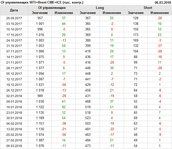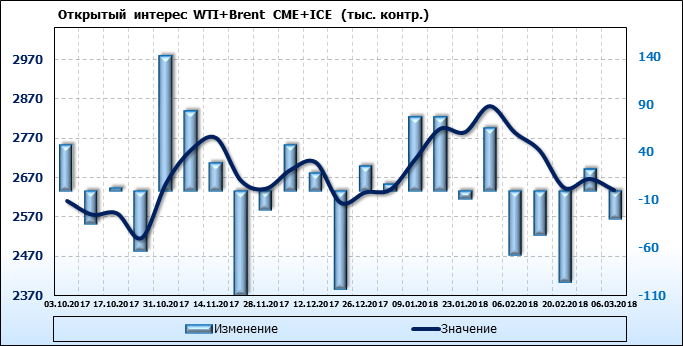 Отчет по открытому интересу. WTI+Brent. CME Group и ICE на 10.03.2018.