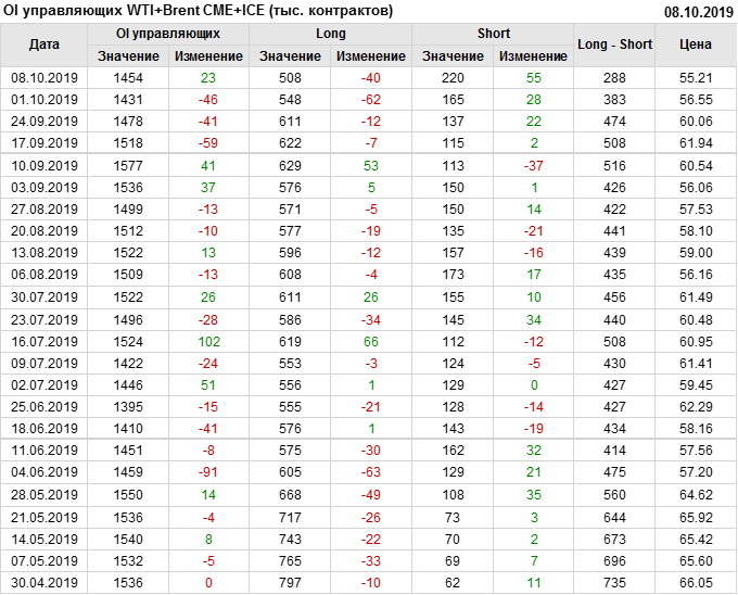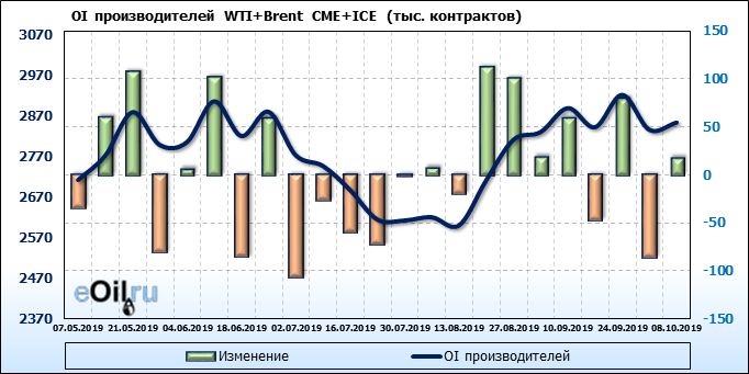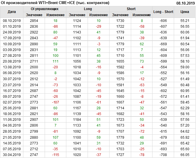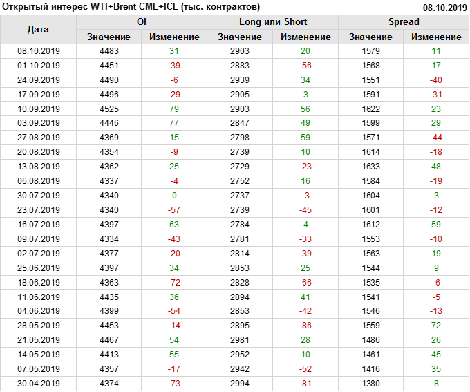 Отчет по открытому интересу. WTI+Brent. CME Group и ICE на 12.10.2019
