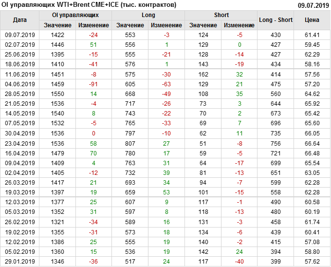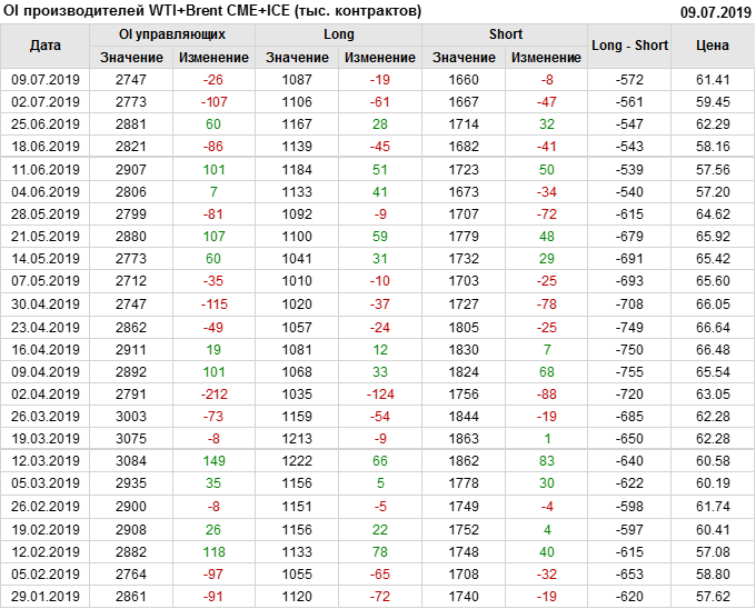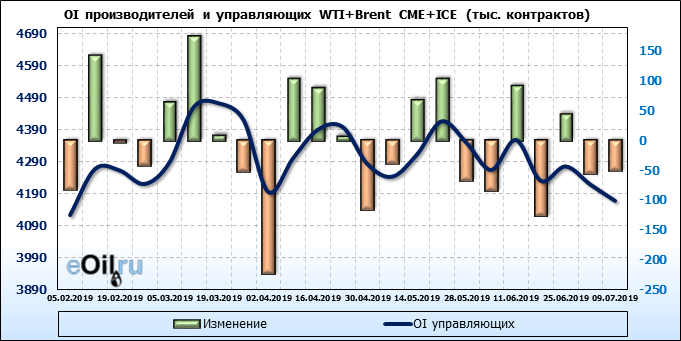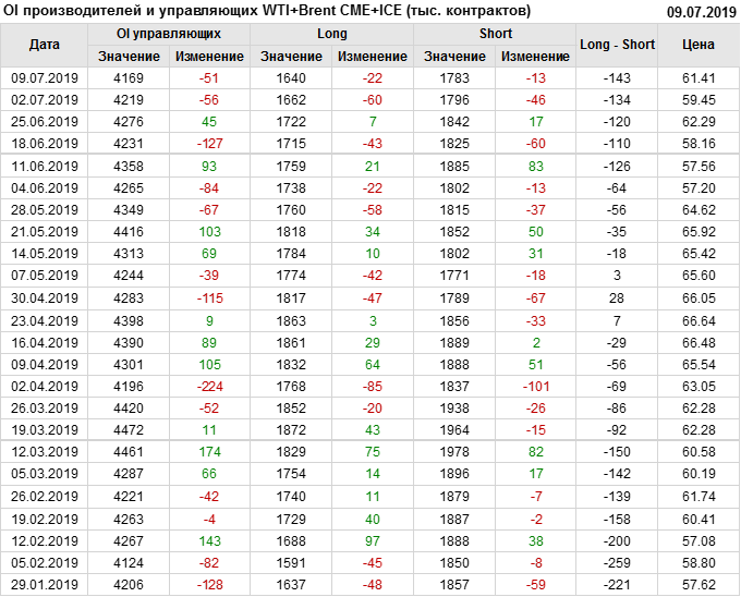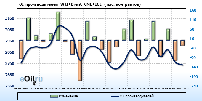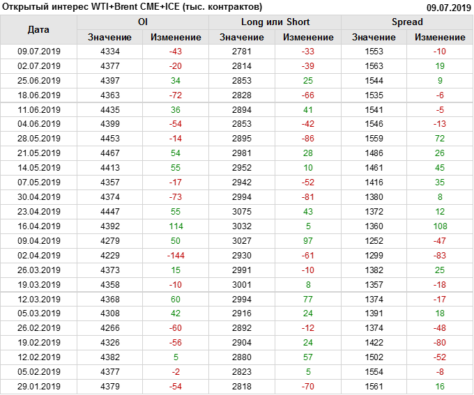 Отчет по открытому интересу. WTI+Brent. CME Group и ICE на 13.07.2019