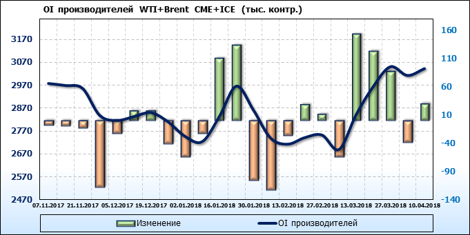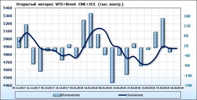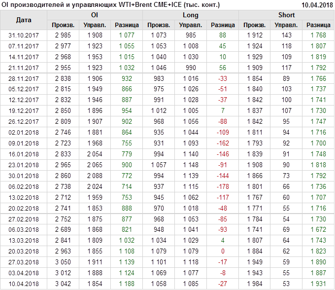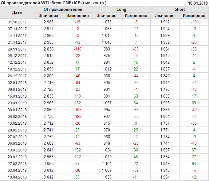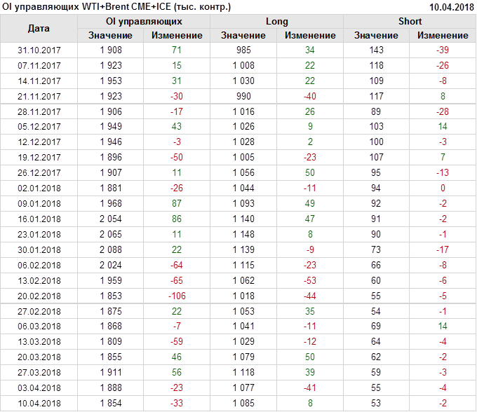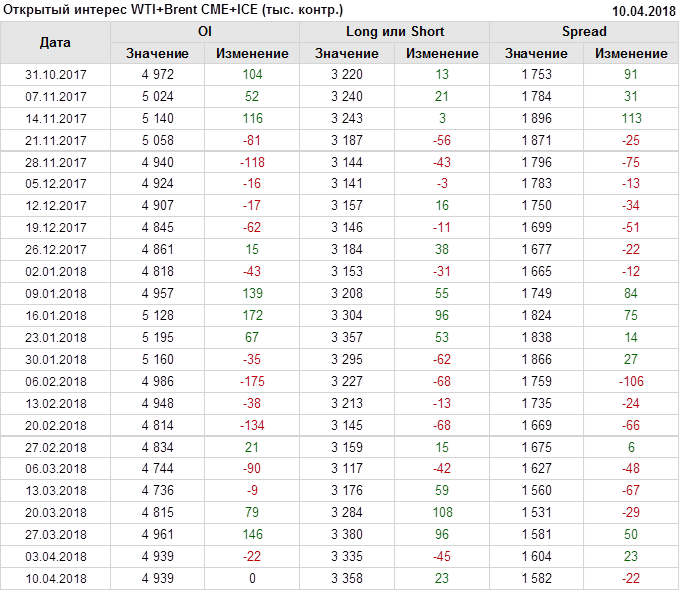 Отчет по открытому интересу. WTI+Brent. CME Group и ICE на 14.04.2018