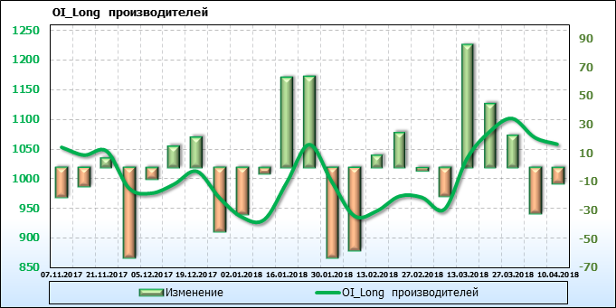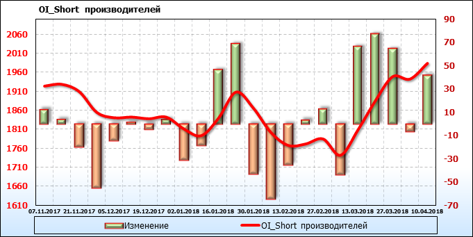 Открытый интерес производителей вырос на 30 тыс. контрактов. Объем контрактов, направленных на хеджирование, составляет 3 042 167 штук. Деньги производителей в течение прошлой недели приходили на рынок поддерживая тенденцию.
