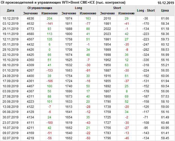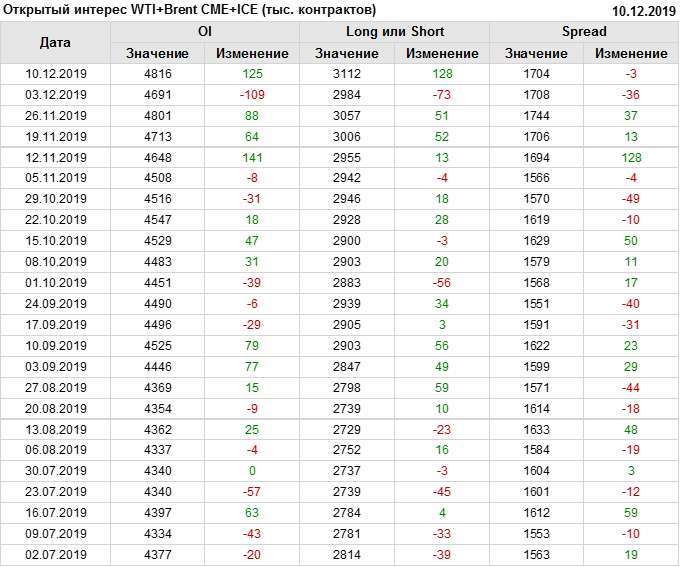 Отчет по открытому интересу. WTI+Brent. CME Group и ICE на 14.12.2019