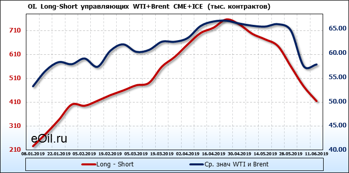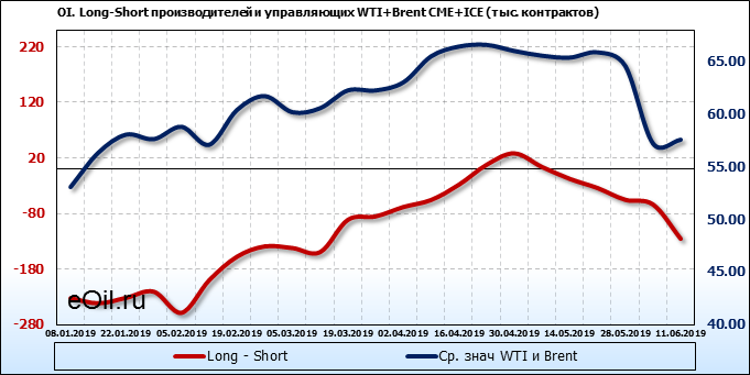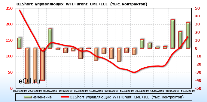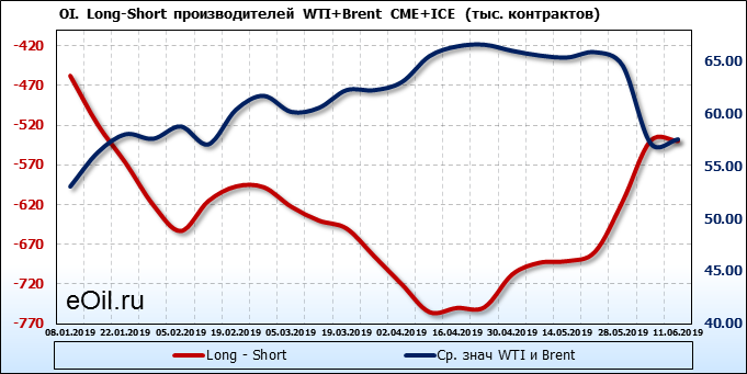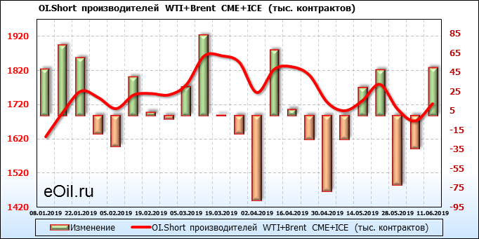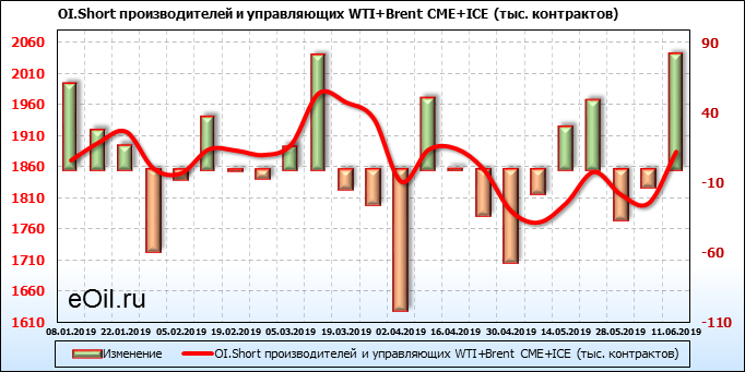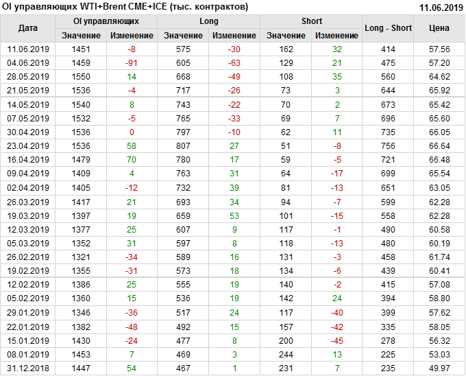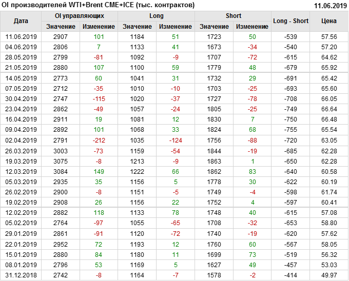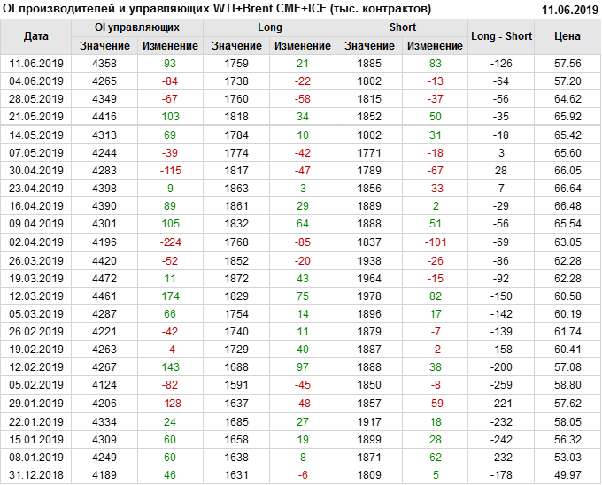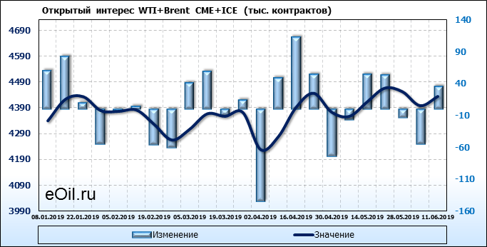 Отчет по открытому интересу. WTI+Brent. CME Group и ICE на 15.06.2019