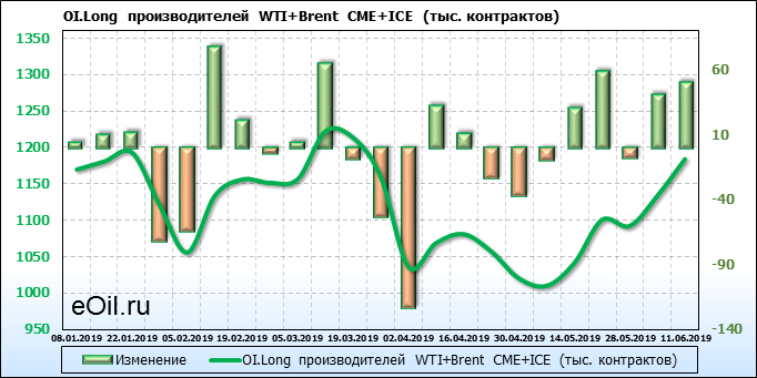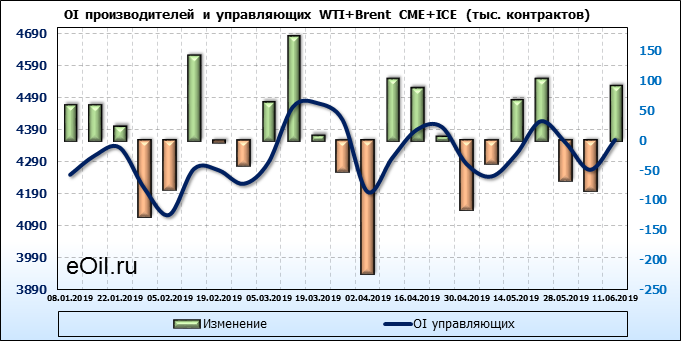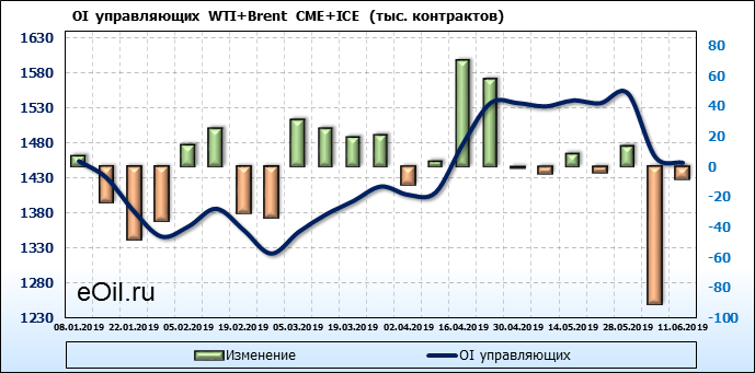 Отчет по открытому интересу. WTI+Brent. CME Group и ICE на 15.06.2019