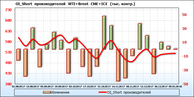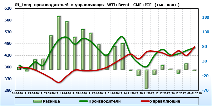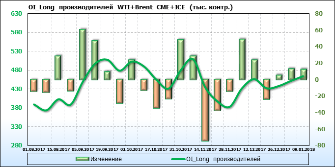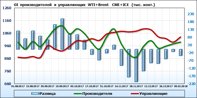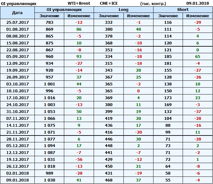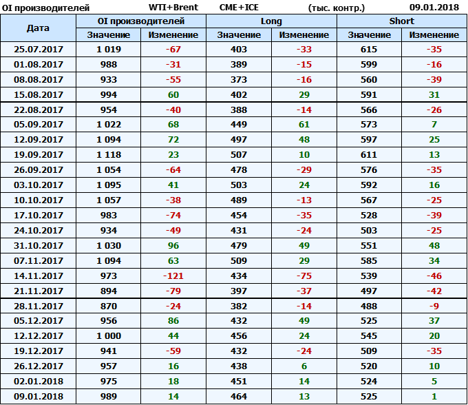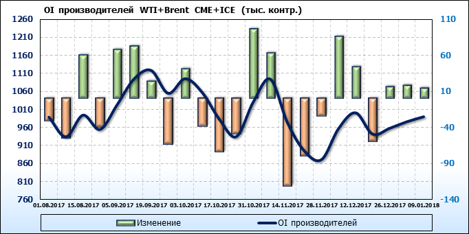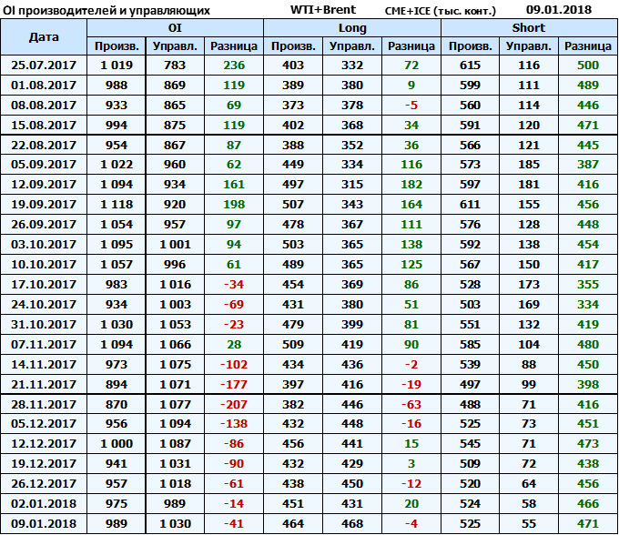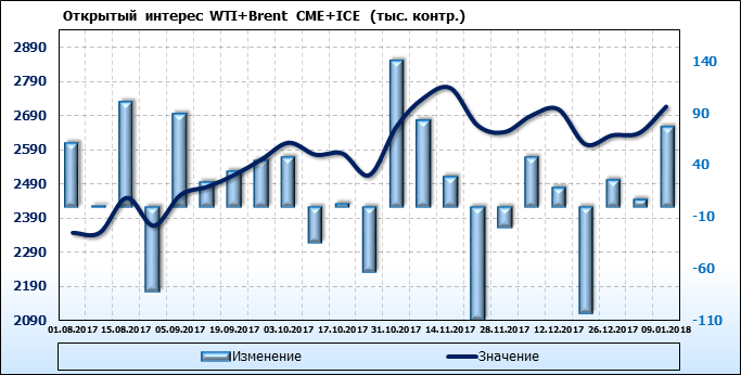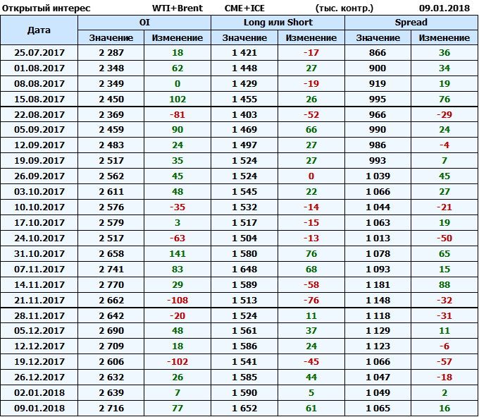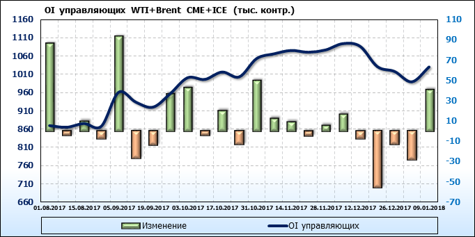 Отчет по открытому интересу. WTI+Brent. CME Group и ICE на 16.01.2018.