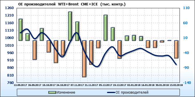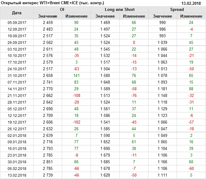 Отчет по открытому интересу. WTI+Brent. CME Group и ICE на 17.02.2018.