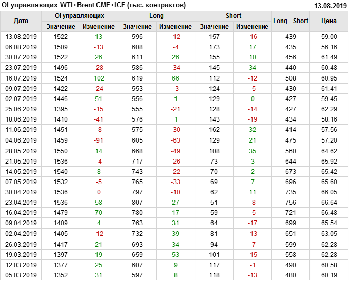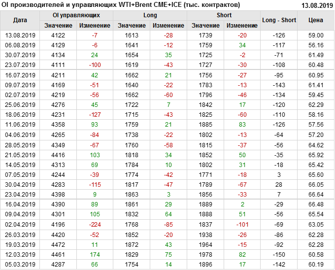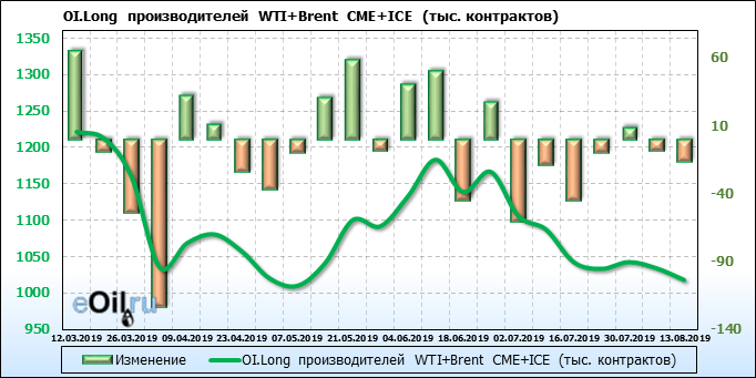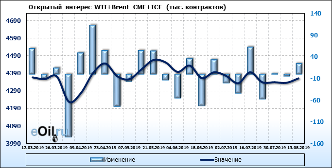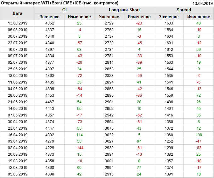 Отчет по открытому интересу. WTI+Brent. CME Group и ICE на 17.08.2019