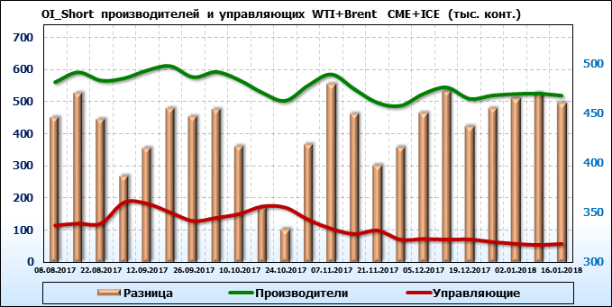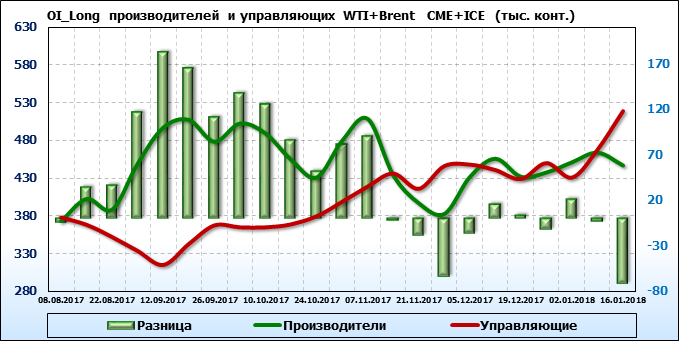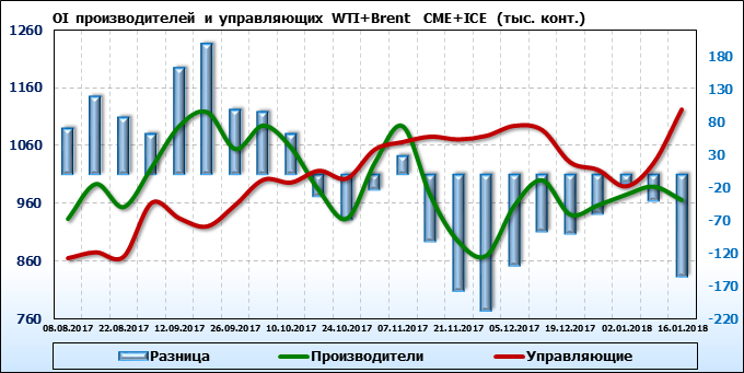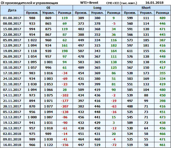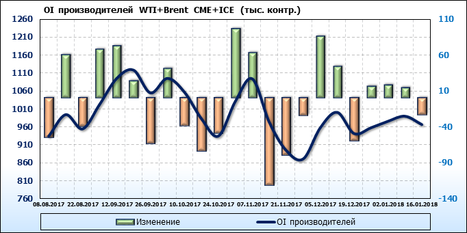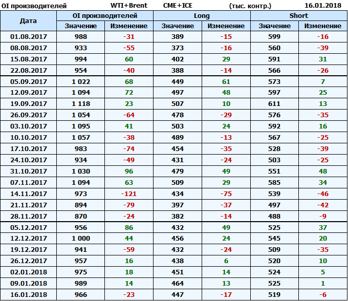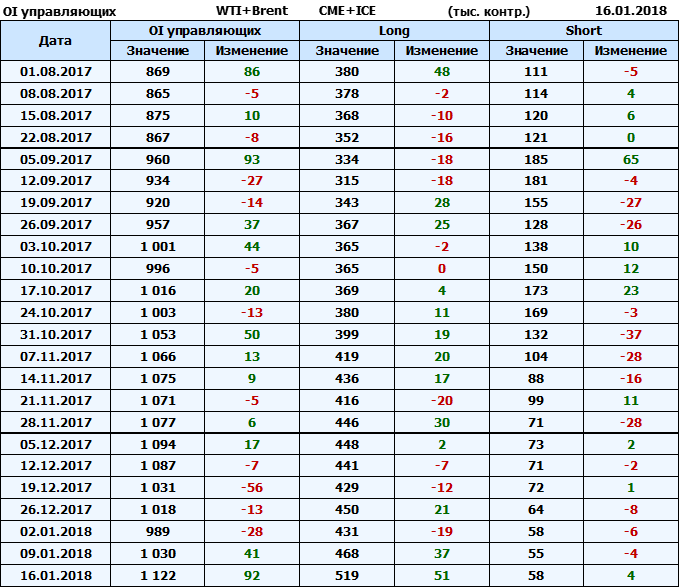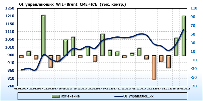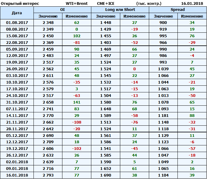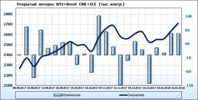 Отчет по открытому интересу. WTI+Brent. CME Group и ICE на 20.01.2018.