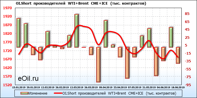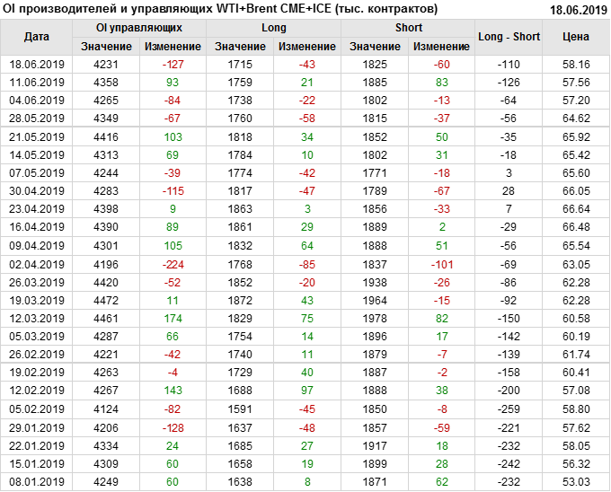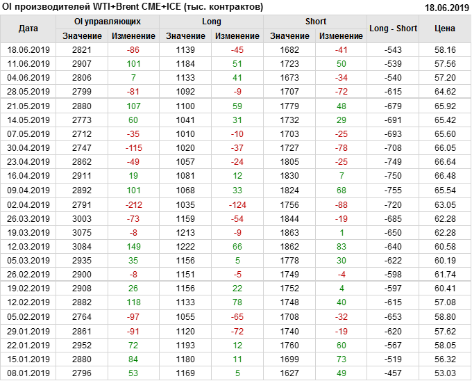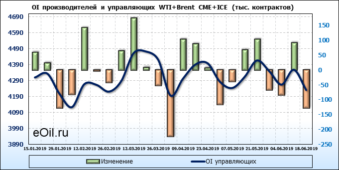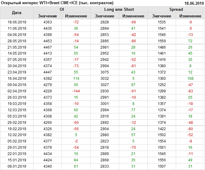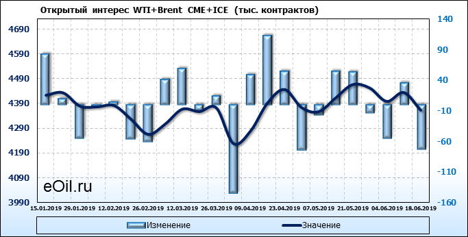 Отчет по открытому интересу. WTI+Brent. CME Group и ICE на 22.06.2019