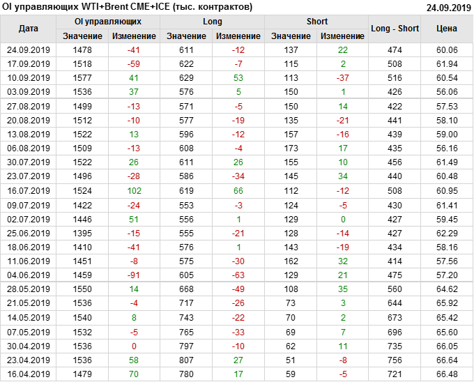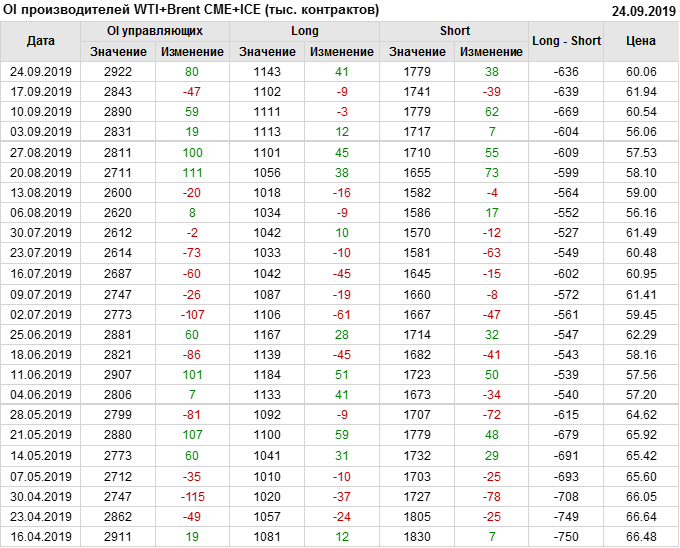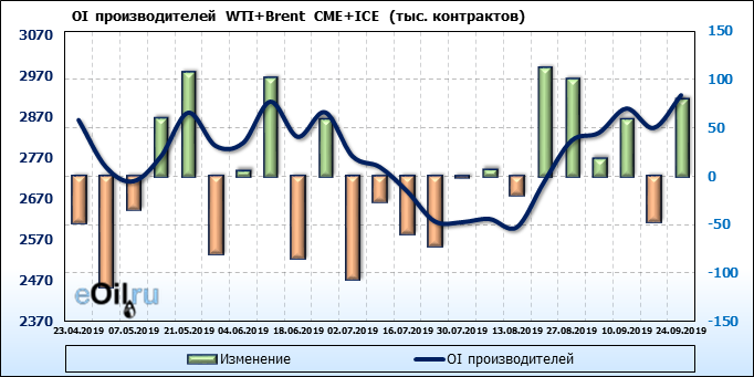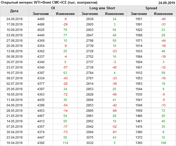 Отчет по открытому интересу. WTI+Brent. CME Group и ICE на 28.09.2019