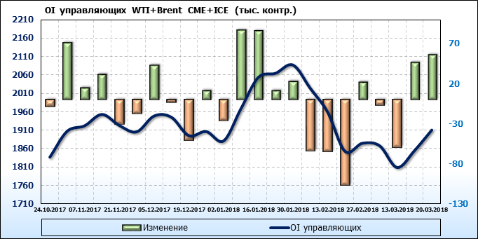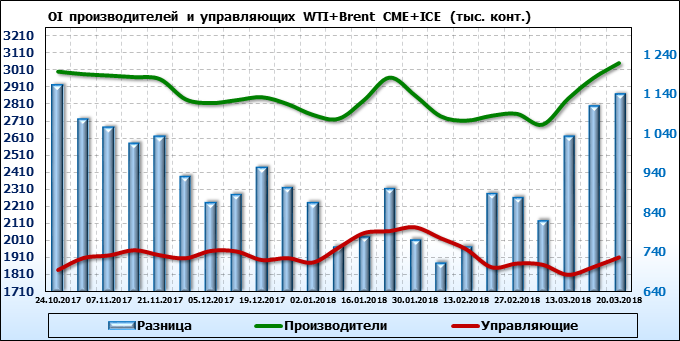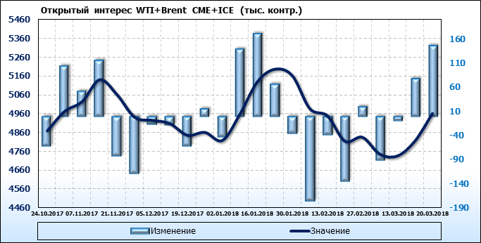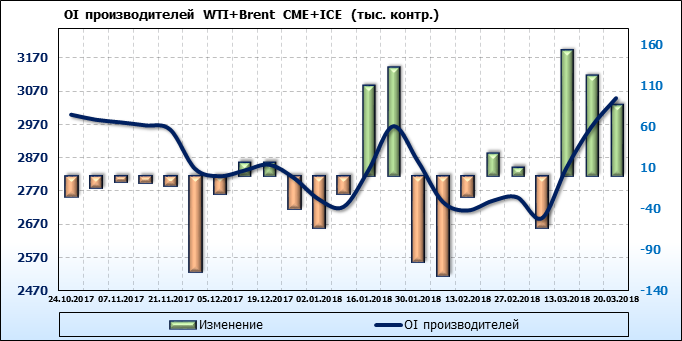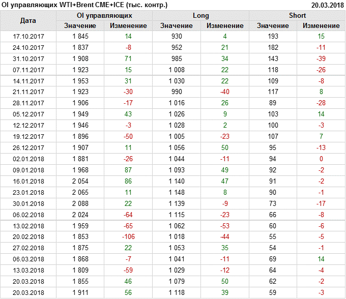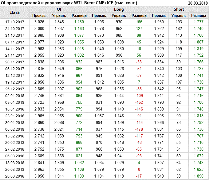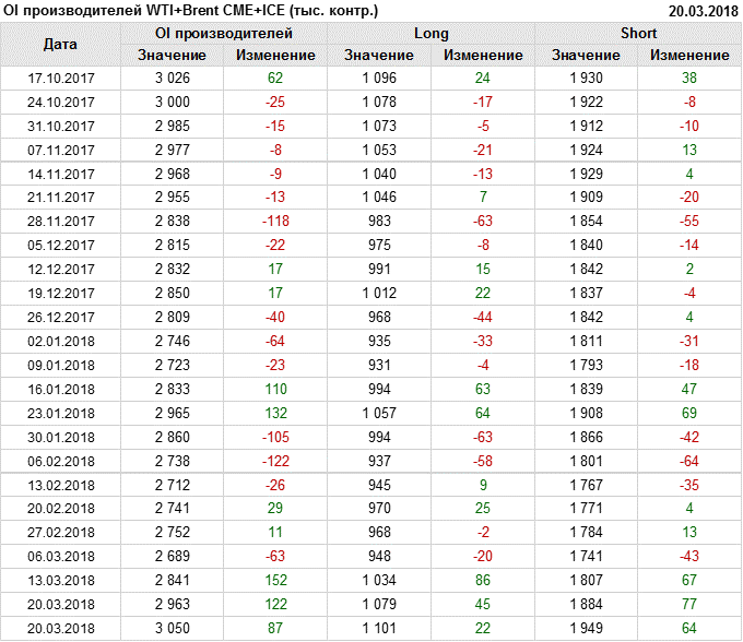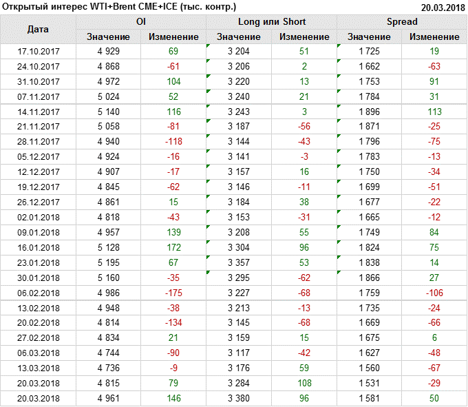 Отчет по открытому интересу. WTI+Brent. CME Group и ICE на 30.03.2018.