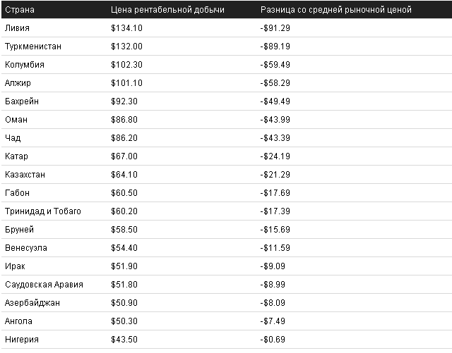 Даже в 2016 году, несмотря на небольшое повышение цен, 18 экономик мира были в крайне неблагоприятной ситуации, так как цена рентабельной добычи была выше средних цен на нефть на рынке.