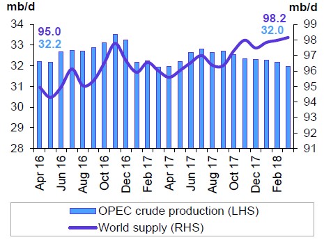 Предложение на мировом рынке нефти. Отчет ОПЕК от 12 апреля 2018