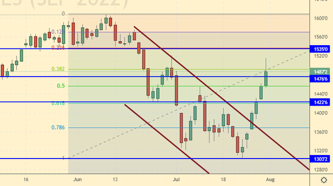 Growth scenario: consider the September futures, the expiration date is September 14th. We will continue to keep the long, but we will strongly push the stop order. We expect the market to turn down.