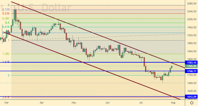 Growth scenario: we are considering the August futures, the expiration date is August 11. We will continue to refrain from buying, as the success of the bulls is still extremely modest.