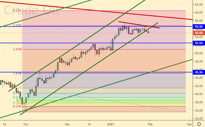 Purchase: look for opportunities in the fall to 46.00. Sale: now. Stop: 56.70. Target: 46.00. Anyone in the position between 54.80 and 55.00, keep the stop at 56.70. Target: 46.00.