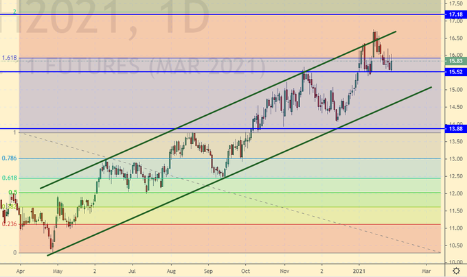 Falling scenario: we continue to consider the short in the current situation as appropriate. Those who are already in position — stop. We are quite capable of taking our 10 cents per pound of coffee. Recommendation:
