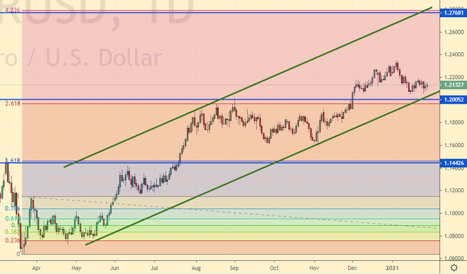 Growth scenario: someone unknown defends the level 1.2100 and so far successfully. Even if we go to 1.2700, which is not a fact, the euro will fall. The eurozone did not grow last year and is unlikely to show anything more than 2 percent this year. America will recover faster, it’s worth realizing.