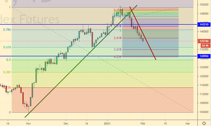 We did not stop at the 2.618% Fibonacci level and went below the 137000 level without a pullback. The 130,000 target doesn’t seem far off now. But now we will not buy even for 130,000 or even for 100,000. Let’s see how events will develop.