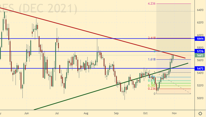 Growth scenario: December futures, expiration date November 19. I would like to see a breakthrough at 98.00, but a much quieter and more likely option would be a fall in prices to 75.00, after which the growth may continue.
