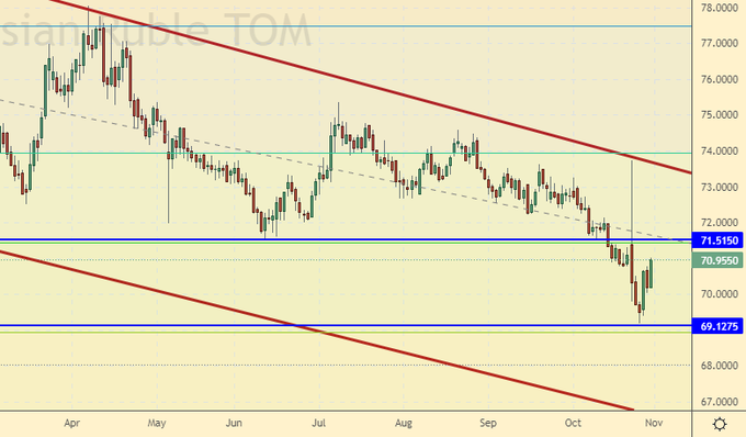 If Powell does not hint at tightening monetary policy on November 3, then the dollar / ruble pair at current oil prices, which, we recall, are above $ 80.00 per barrel, will be able to go to the 65.00 level. And there, even up to 67 kopecks for one US dollar is not far away.
